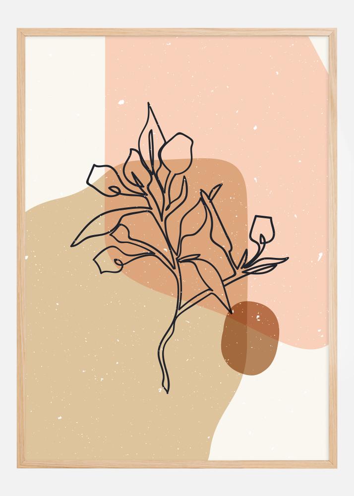 Ovaj elegantni i minimalistički poster apstraktnog grančice biljke uvodi umirujuću paletu boja koja odmah daje sofisticiran i opušten dojam. Umjetničko djelo kombinira organske oblike i linije u nizu preklapajućih oblika, što stvara osjećaj dubine i složenosti, unatoč njegovom naizgled jednostavnom dizajnu.