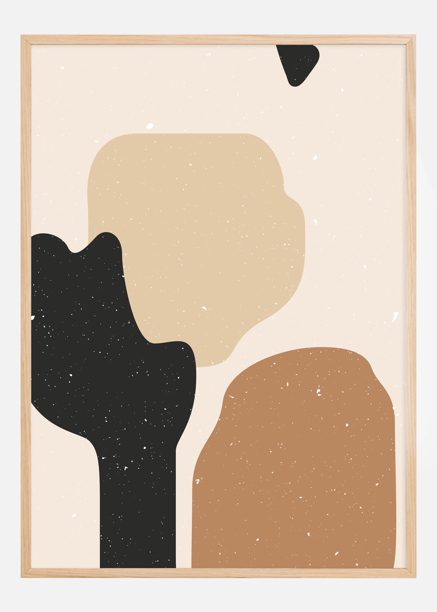 Ovaj apstraktni poster, sa svojim elegantnim organskim oblicima i toplom, zemljanom paletom boja, donosi miran i moderan element u svaku sobu. Motiv, koji se ističe svojim crnim i bež tonovima s akcentima terakote, jednako je misteriozan koliko i pozivajući, potičući promatrača da protumači vlastito značenje u jednostavnim, ali snažnim oblicima.