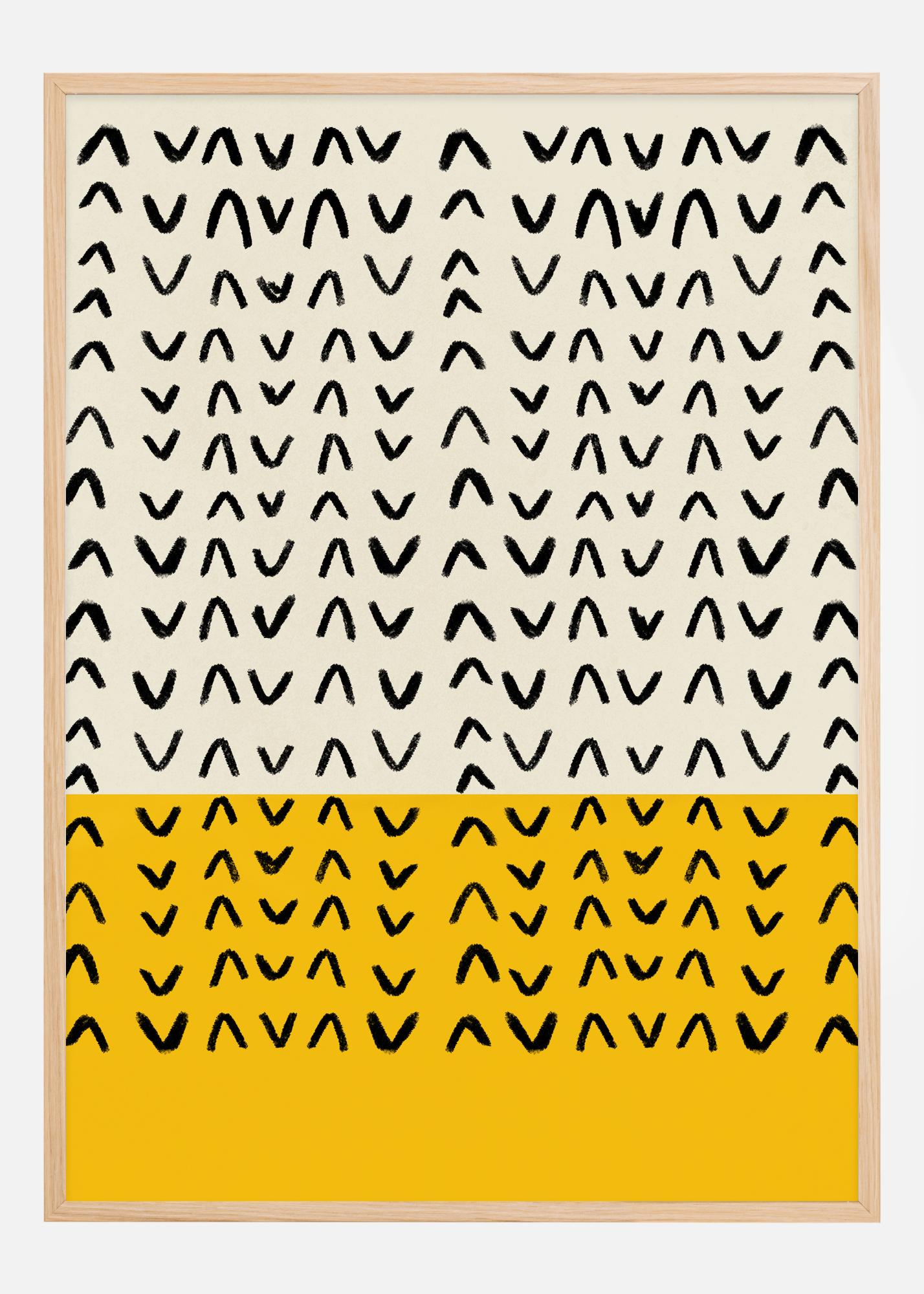 Doživite modernu i minimalističku estetiku s ovim umjetničkim posterom. Dizajn prikazuje ritmičku kompoziciju apstraktnih, crnih zamahujućih oblika na nježnoj, neutralnoj pozadini. Motiv je oštro podijeljen snažnim žutim dijelom u donjoj trećini, koji unosi drski kontrast u pretežno miran i harmonijski gornji dio. Ovaj poster je savršen za trendi pojedinca koji želi unijeti suvremeni i elegantni osjećaj u svoj dom ili ured.