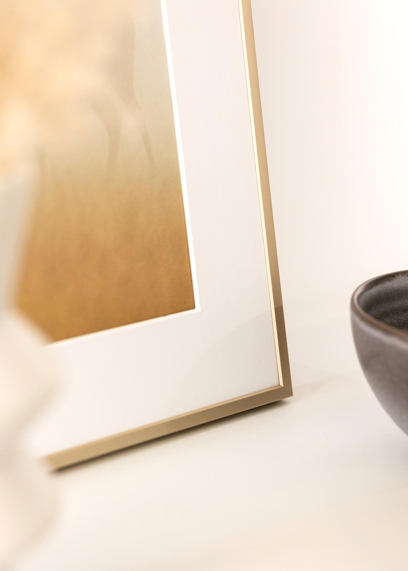Okvir za slike izrađen je od aluminija i ima okvir širine 7,8 mm te dubinu od 18,6 mm. Svijetla mesing boja jednostavno se uklapa u većinu stilova uređenja, od skandinavskog do minimalističkog. Oštri kutovi i glatka završna obrada pridonose elegantnom osjećaju koji podiže svaku prostoriju.