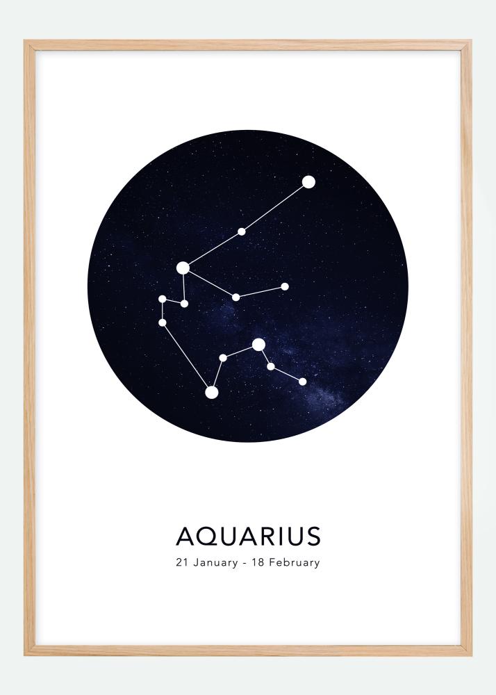 Poklonite osobnu sliku nekome koga volite! Ova elegantna poster ima motiv zviježđa Vodenjaka na pozadini u obliku crnog i plavog zvjezdanog neba. Ispod se nalazi ime zajedno s važećim datumom na engleskom jeziku.