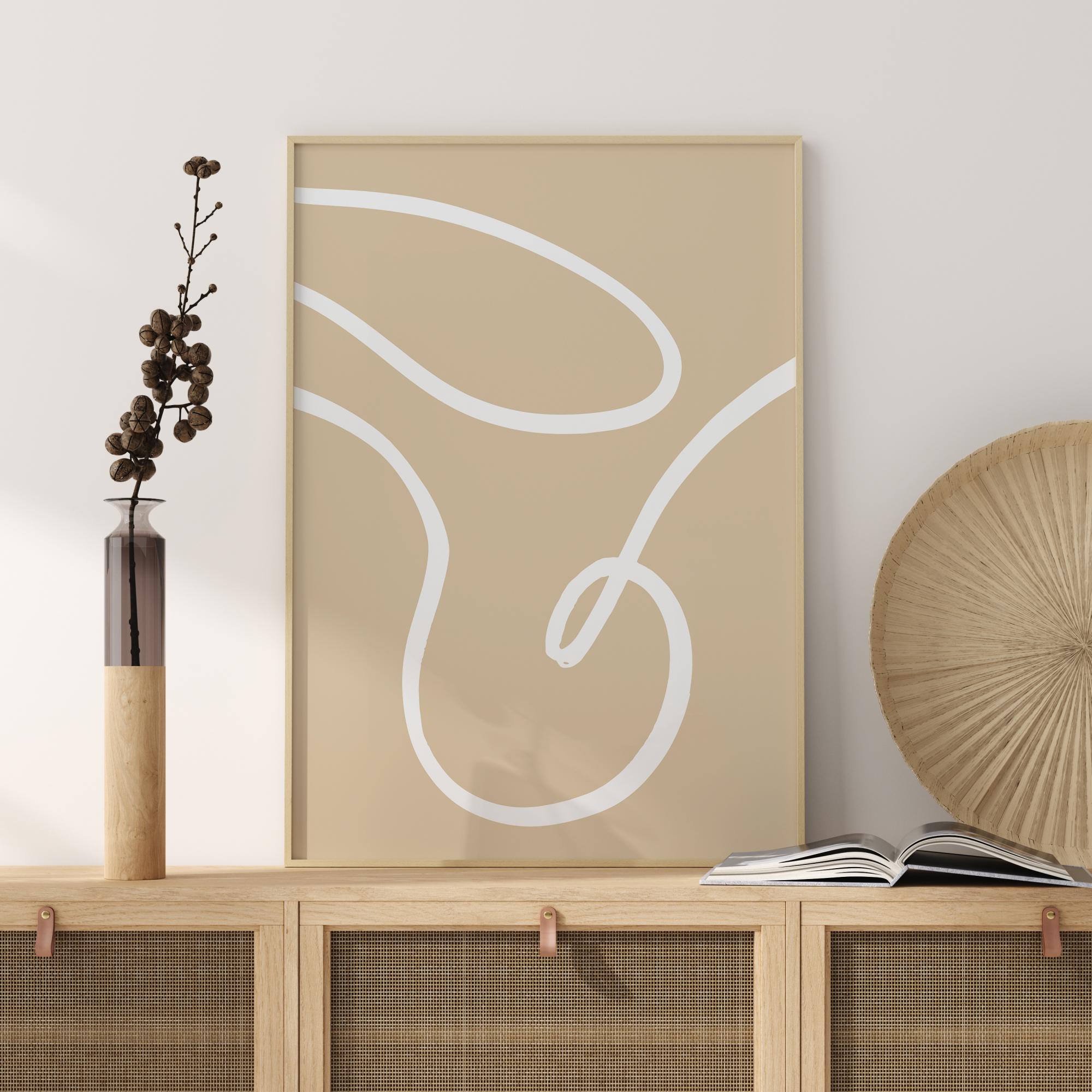 Jednostavni poster s linearnim crtežom gdje su krem bijele linije prikazane kao spirale na bež pozadini kako bi mašta poletjela. Možete vidjeti i doživjeti što god želite dok gledate ovo djelo. Za još snažniji efekt možete objesiti poster na zid u smjeloj boji u domu.