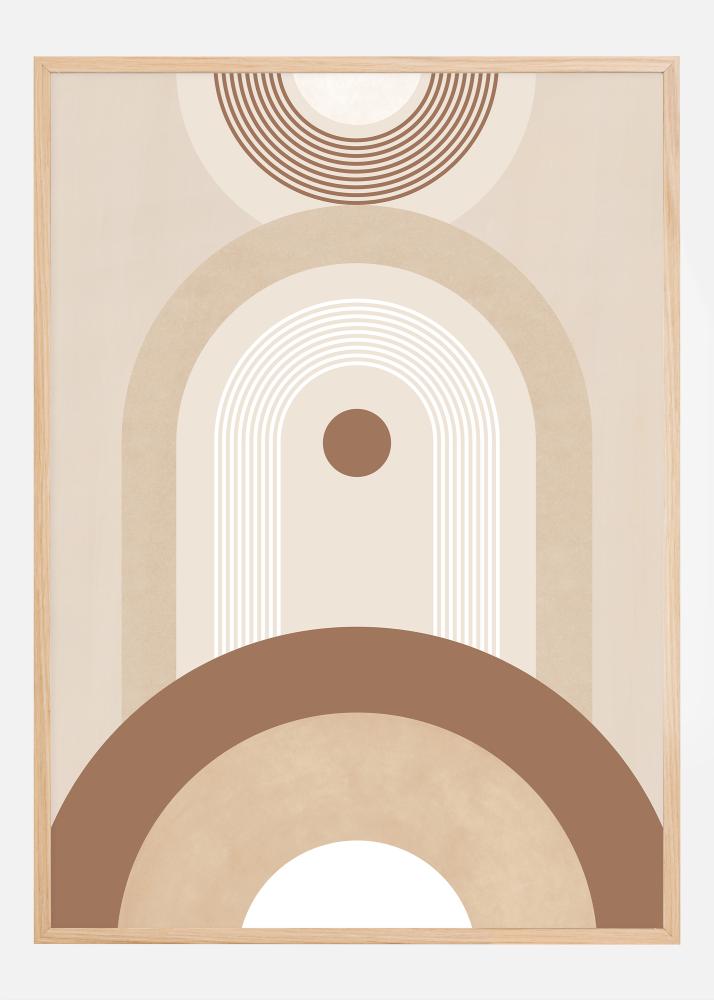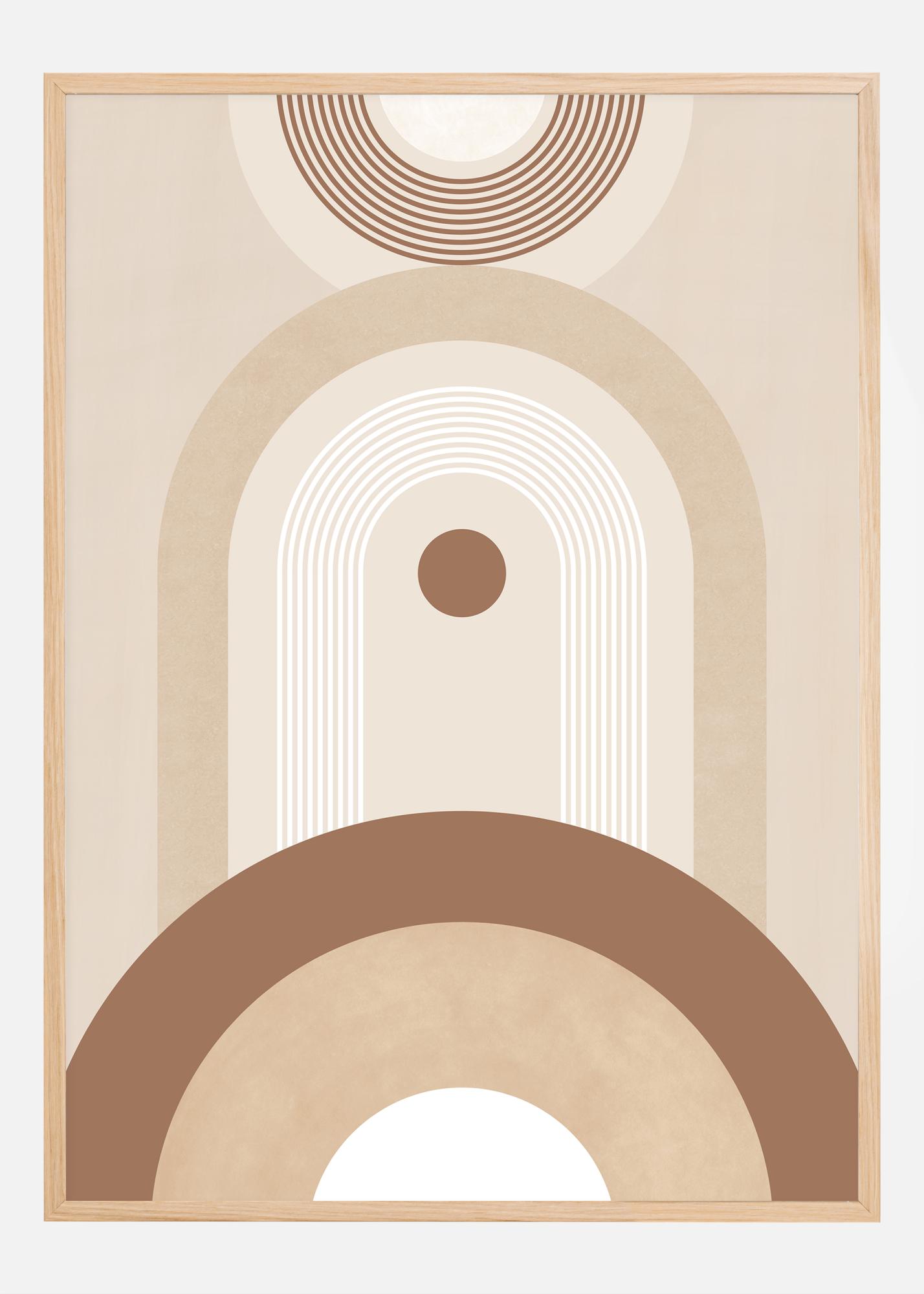 Istražite ljepotu geometrije i minimalizma s ovom izrazitom posterom, dijelom naše kurirane kolekcije umjetnosti. Ovaj print, inspiriran estetikom sredine stoljeća, kombinira kružne oblike i linije kako bi stvorio osjećaj ravnoteže i harmonije. Mekani bež i smeđi tonovi ovog plakata prenose osjećaj smirenosti i savršeni su za stvaranje opuštene i elegantne atmosfere u svakoj prostoriji.