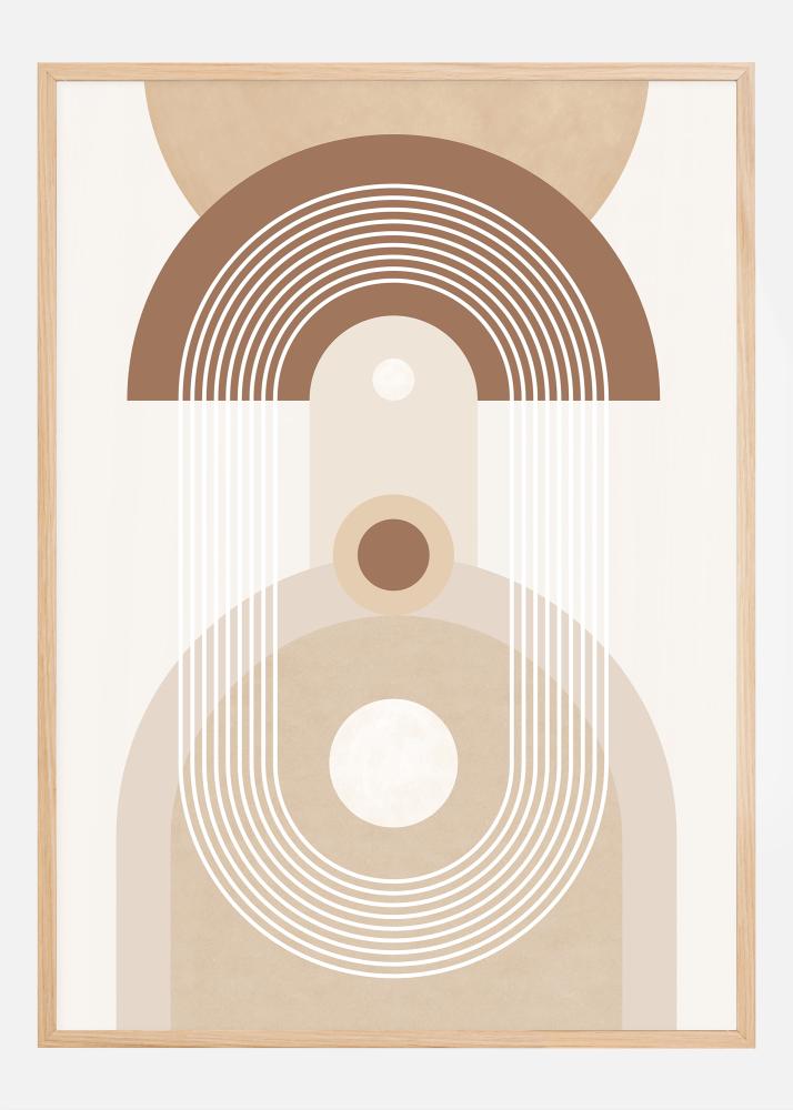 Ovaj sofisticirani i elegantni poster nastavlja našu kuriranu kolekciju srednje-stoljetne moderne umjetnosti. Apstraktna kompozicija, koja se poigrava s oblikom i negativnim prostorom, koristi ograničeni spektar boja bež i smeđih tonova kako bi stvorila osjećaj dubine i pokreta. Svojim geometrijskim figurama i preklapajućim linijama, ovaj poster nudi suptilnu složenost koja se može cijeniti iz svih kutova.