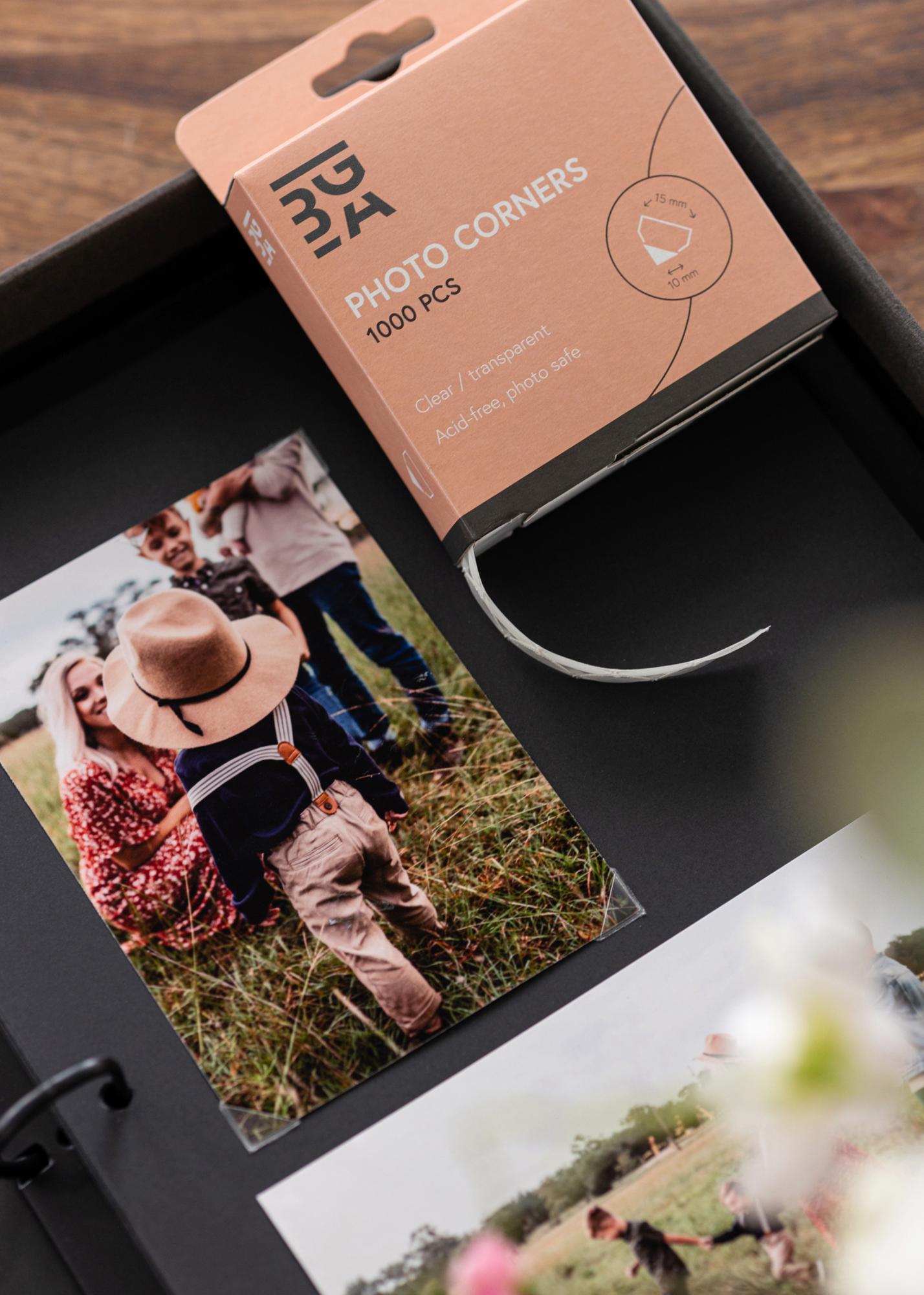 Kutovi za fotografije su savršeni kada, na primjer, montirate slike u fotoalbum i ne želite koristiti ljepilo. Budući da se postavljaju na kutove slike, također ih štitite od postepenog oštećenja. Rezultat je uredna, jednostavna i pouzdana montaža vaših slika.