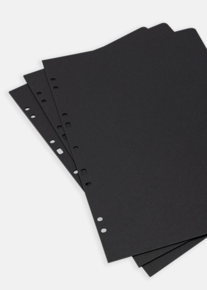 Ovi listovi za albume u veličini SA4 savršeni su za ring-pere i pružaju dovoljno prostora za montažu i očuvanje vaših slika i uspomena. Crni listovi stvaraju elegantan kontrast i ističu vaše fotografije na profinjen način.