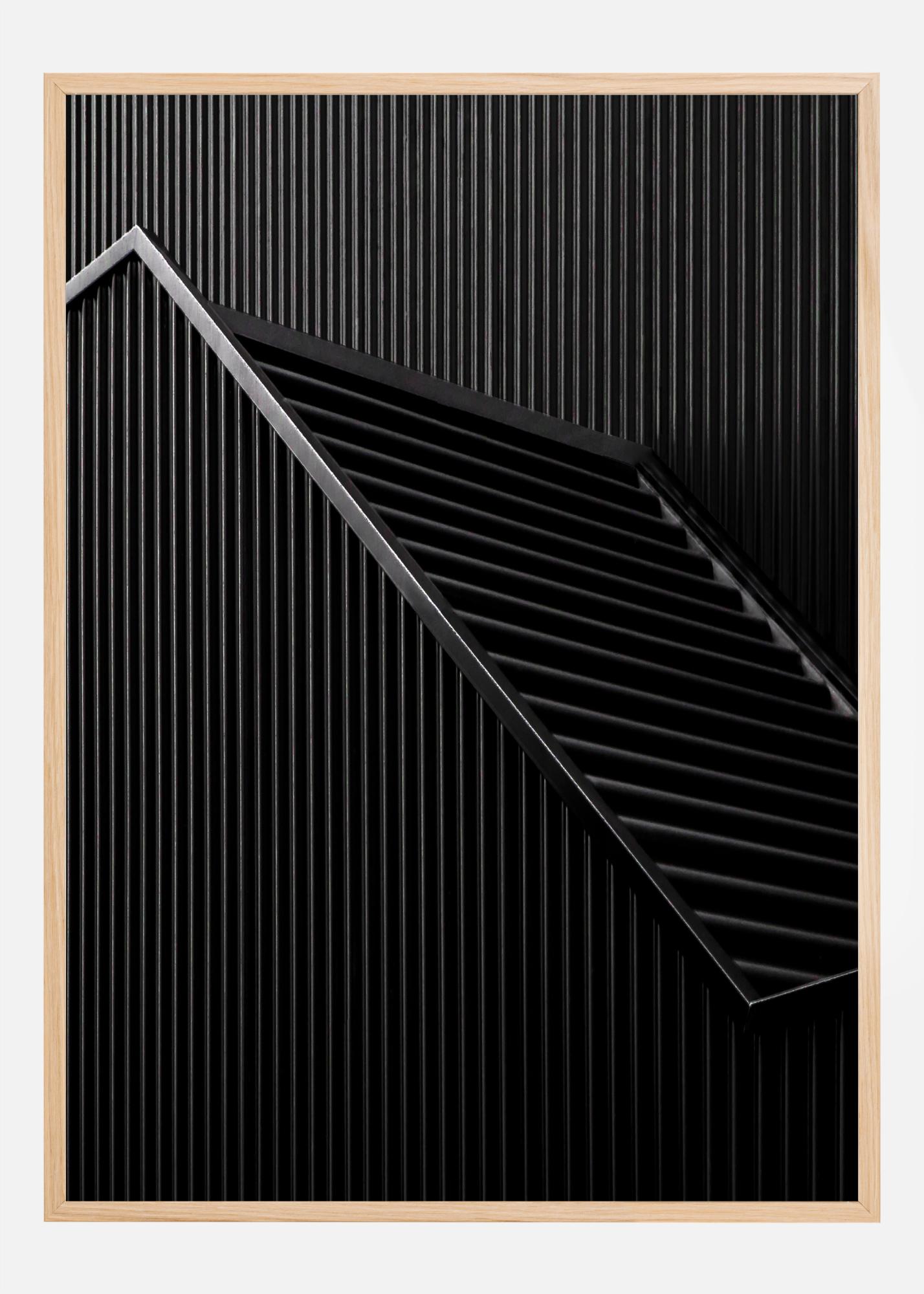 Geometrijski poster s nizom stepenica ili krovova uz zid. Ova crno-bijela fotografija podsjeća na Escherovu sliku. Pratite linije drva dok se siječe pod različitim kutovima oko djela za fantastičan spektakl. Postavite ovu sliku na bijeli zid za još dramatičniji učinak.
