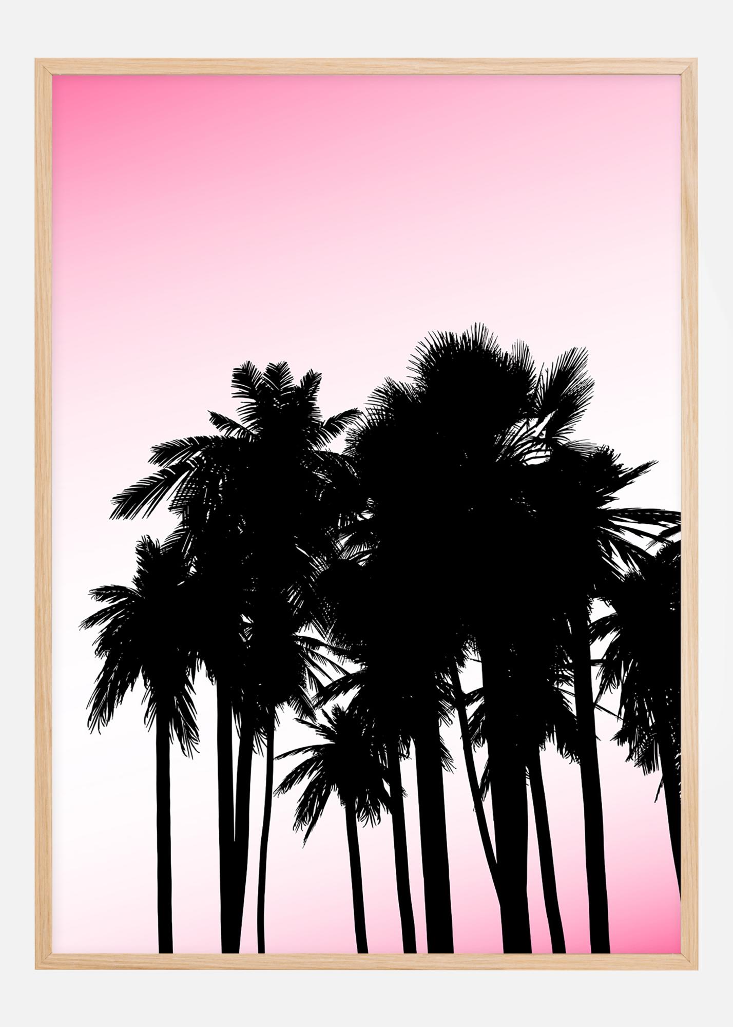 Ukusni poster s palmama na ružičastom nebu, koji daje osjećaj kao da ste na šetalištu u Miamiju. Motiv se jednako dobro uklapa u glamurozan interijer s dodirom art decoa, u zlatnom okviru, kao i u moderni interijer uokviren u tanki crni okvir. Poster izgleda dobro i sam na zidu s dodacima s plaže i u kombinaciji s drugim grafičkim tiskom na većem zidu s fotografijama koji postaje središnja točka u sobi.