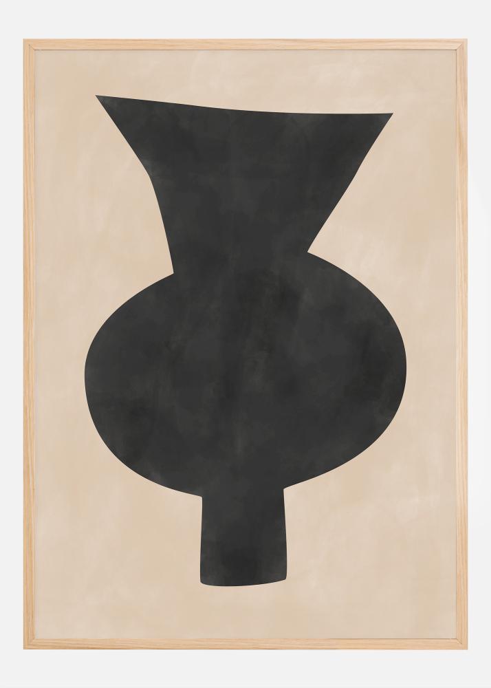Ovaj poster hvata suštinu suvremene apstraktne umjetnosti sa svojom smjelom i jednostavnom crnom formom koja podsjeća na vazu ili skulpturu, nudeći snažan vizualni učinak na neutralnoj pozadini. Kontrast između duboke crne i umirujuće bež čini ovaj poster savršenim za one koji žele napraviti stilski, ali odlučan unutarnji izraz. Dinamična i pomalo organska silueta forme stvara osjećaj i kretanja i mira, pozivajući na refleksiju i interpretaciju.