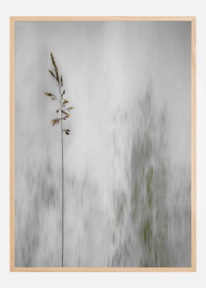 Meki poster s jednim klasjem trave na mekoj sivoj pozadini. Zlatno žuto klasje jasno se ističe na mekom fokusu u pozadini koji privlači pogled. Objesite sliku na neutralni zid u domu za dašak magije uz pomoć ovog jednostavnog djela.