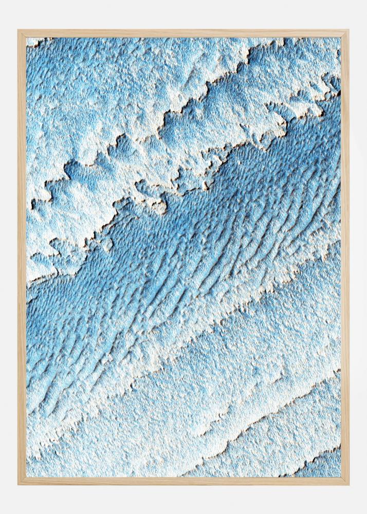 Zračni plakat s valovima koji udaraju o obalu. Bijele pjenušave linije na svakom valu dok se voda mreška i približava kopnu. Svijetloplava i azurna područja čine ovu sliku smjelom. Preporučujemo ga kombinirati s narančastim zidom kako biste postigli puni učinak kroz ove komplementarne boje.