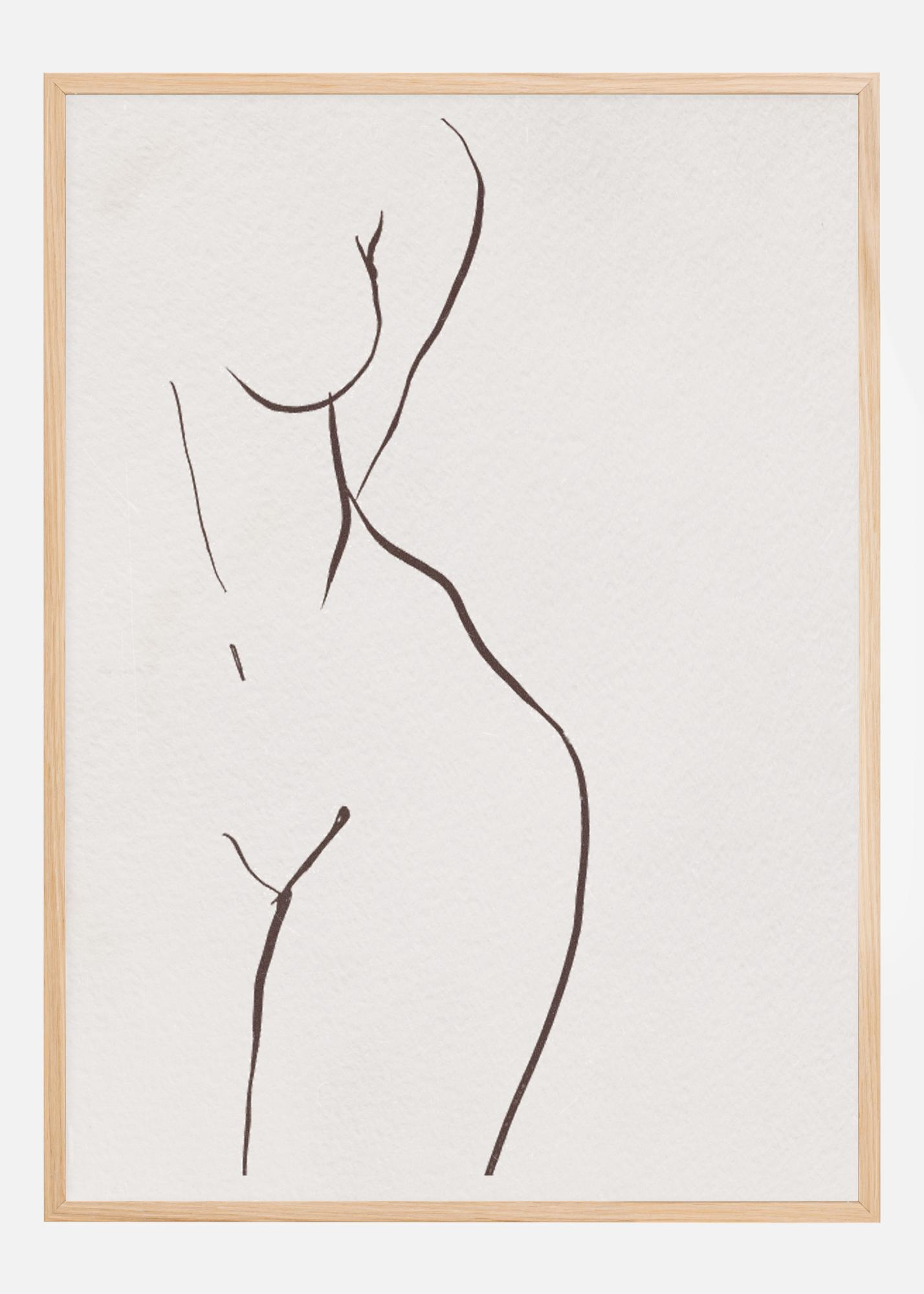 Plakat sa ženinim bokovima. Jako istaknute crne linije na bijeloj pozadini skiciraju stranu žene od boka do ramena. Mekane krivulje vode pogled oko njezinih oblika na ovoj fluidnoj slici. Objesite ga na svoj zid za umjetnički dojam.