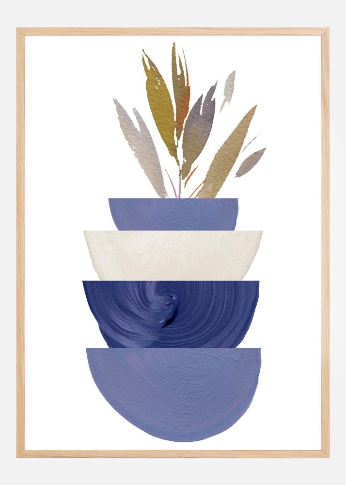 Ovaj moderan i umjetnički poster prikazuje boemsku zdjelu u minimalističkom dizajnu, savršeno za one koji žele dodati osjećaj mira i trendi dizajna svom domu. Motiv, koji se fokusira na harmoničnu igru oblika i boja, ističe veliku zdjelu u nijansama plave s izrazitom i valovitom teksturom koja ispunjava donji dio slike. Na vrhu zdjele nalazi se platforma u neutralnoj bež boji, na kojoj stoji druga, manja zdjela u tamnijoj plavoj nijansi.
