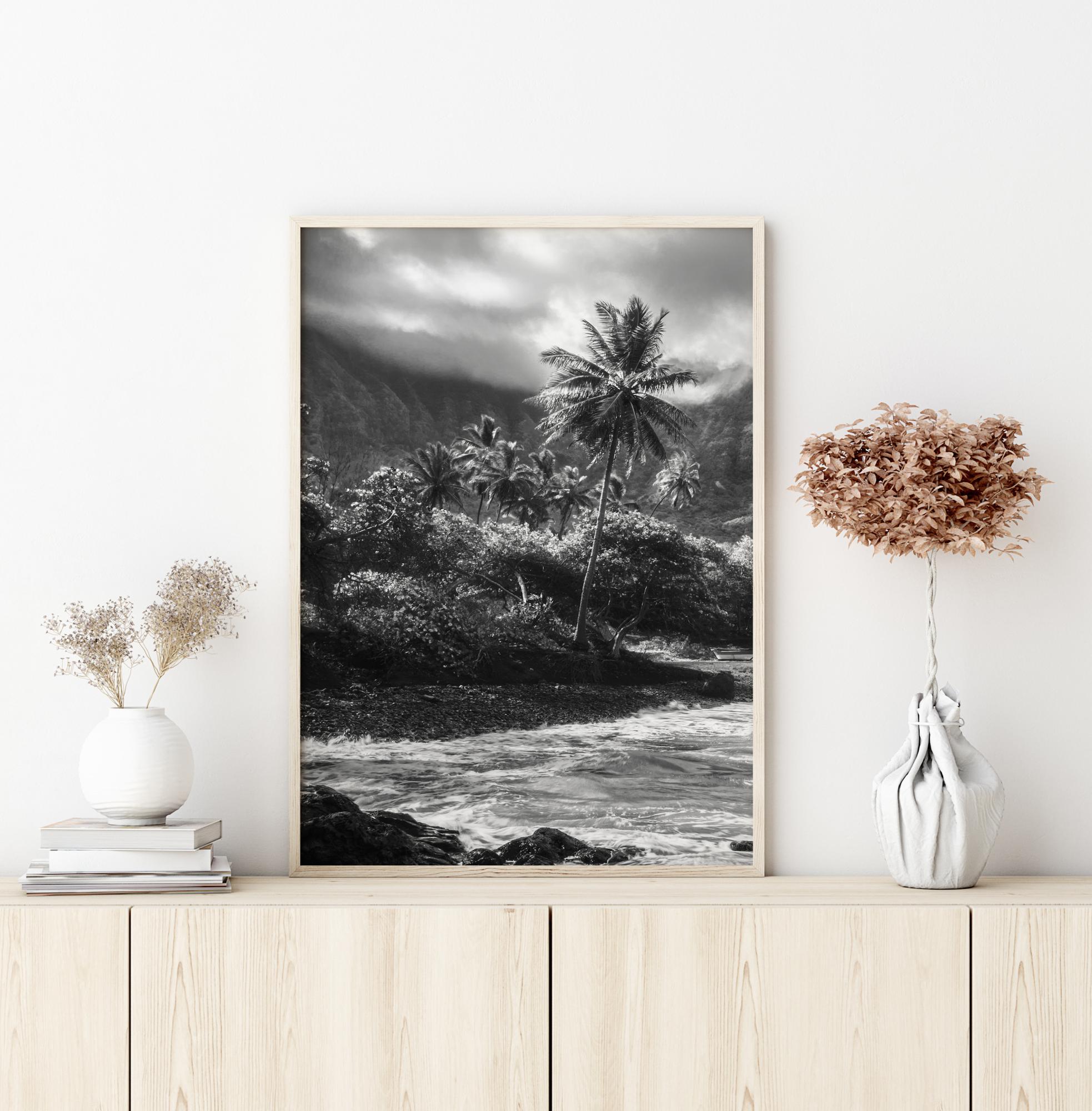 Priroda plakat s približavajućom olujom gdje se more susreće s kopnom. Oblačno nebo zasjenjuje fotografiju dok palme lepršaju na vjetru. Pjenušavo more udara o kamenitu obalu za dodatni efekt. Stvorite malo dramatike u domu s ovim crno-bijelim djelom na neutralnom zidu.