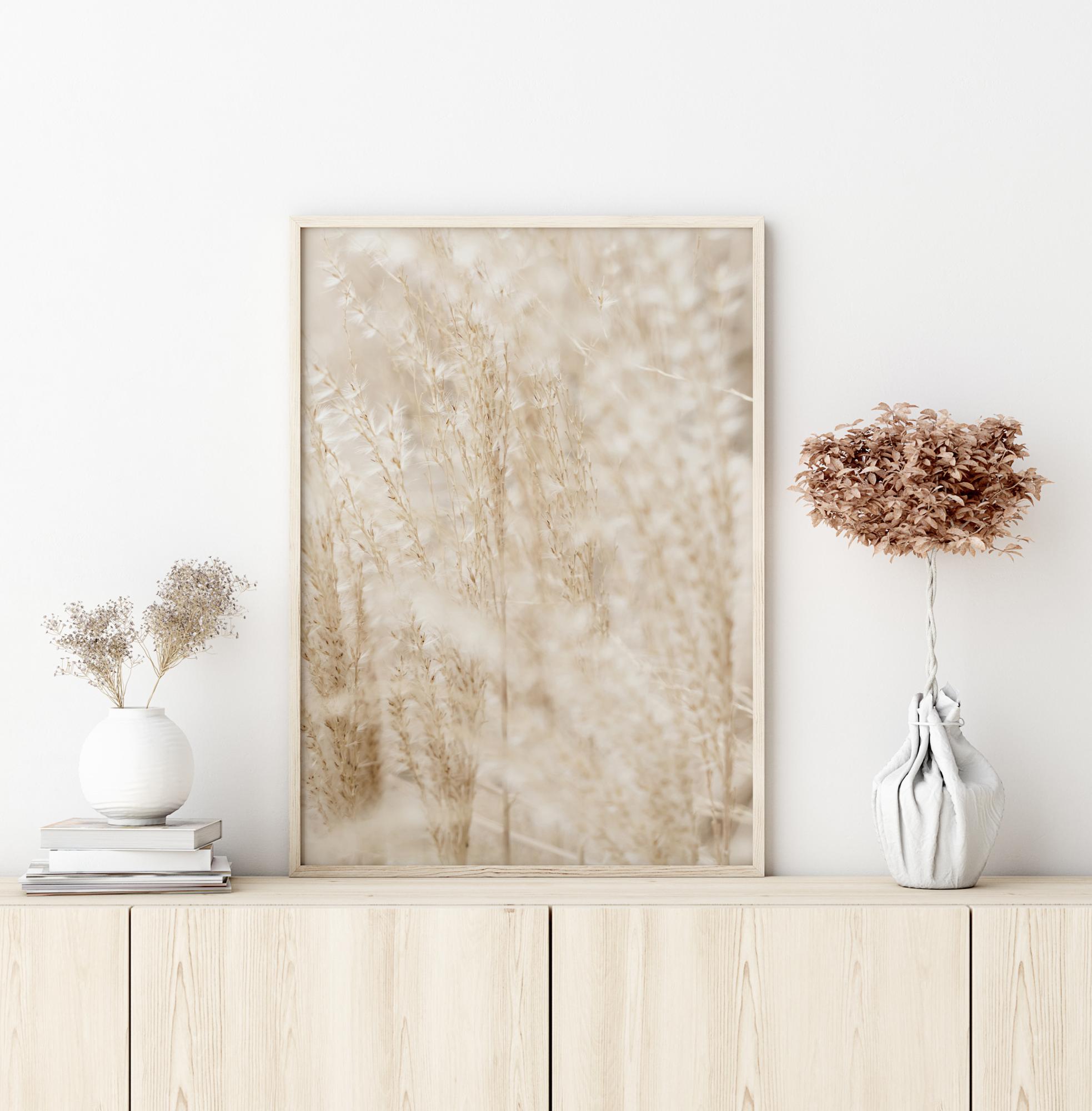 Meki plakat zlatne boje s poljem. Slika je opuštajuća, s klasjem pšenice pažljivo u fokusu, mekani krajevi osvijetljeni su gotovo anđeoskim bijelim svjetlom. Za pomalo umirujući eterični pogled, ovo je savršeno djelo za objesiti na jedan od kontrastnih zidova doma.