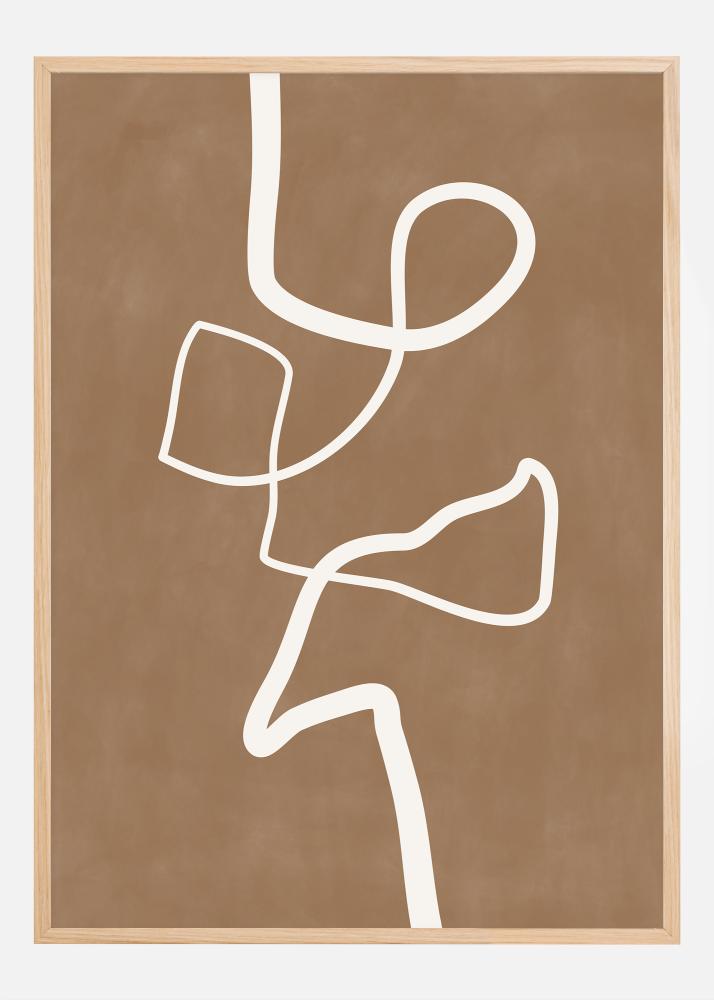 S uz suptilnim i suvremenim dodirom, ovaj poster prenosi jednostavnu eleganciju kroz svoju jednostavnu, kontinuiranu bijelu liniju koja crta apstraktni oblik protiv tople smeđe pozadine. Ovo umjetničko djelo utjelovljuje dušu minimalizma i nudi čisti i jednostavni stil koji ipak uspijeva privući oko i maštu. Linija teče slobodno i neometano, stvara otvorene i zatvorene oblike te nudi vizualnu poeziju koja je i umirujuća i intelektualno stimulativna. Savršeno za ljubitelja minimalističkog dizajna, ovaj print je ukusan dodatak svakom modernom interijeru.