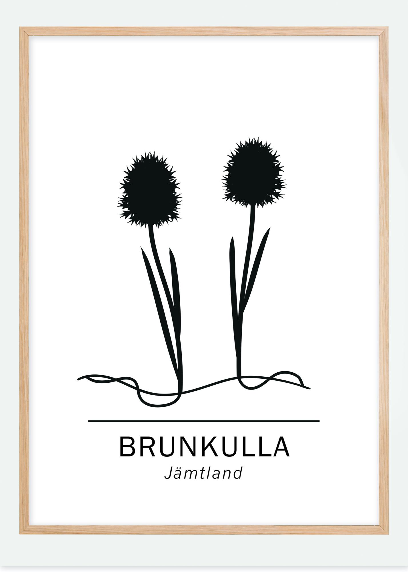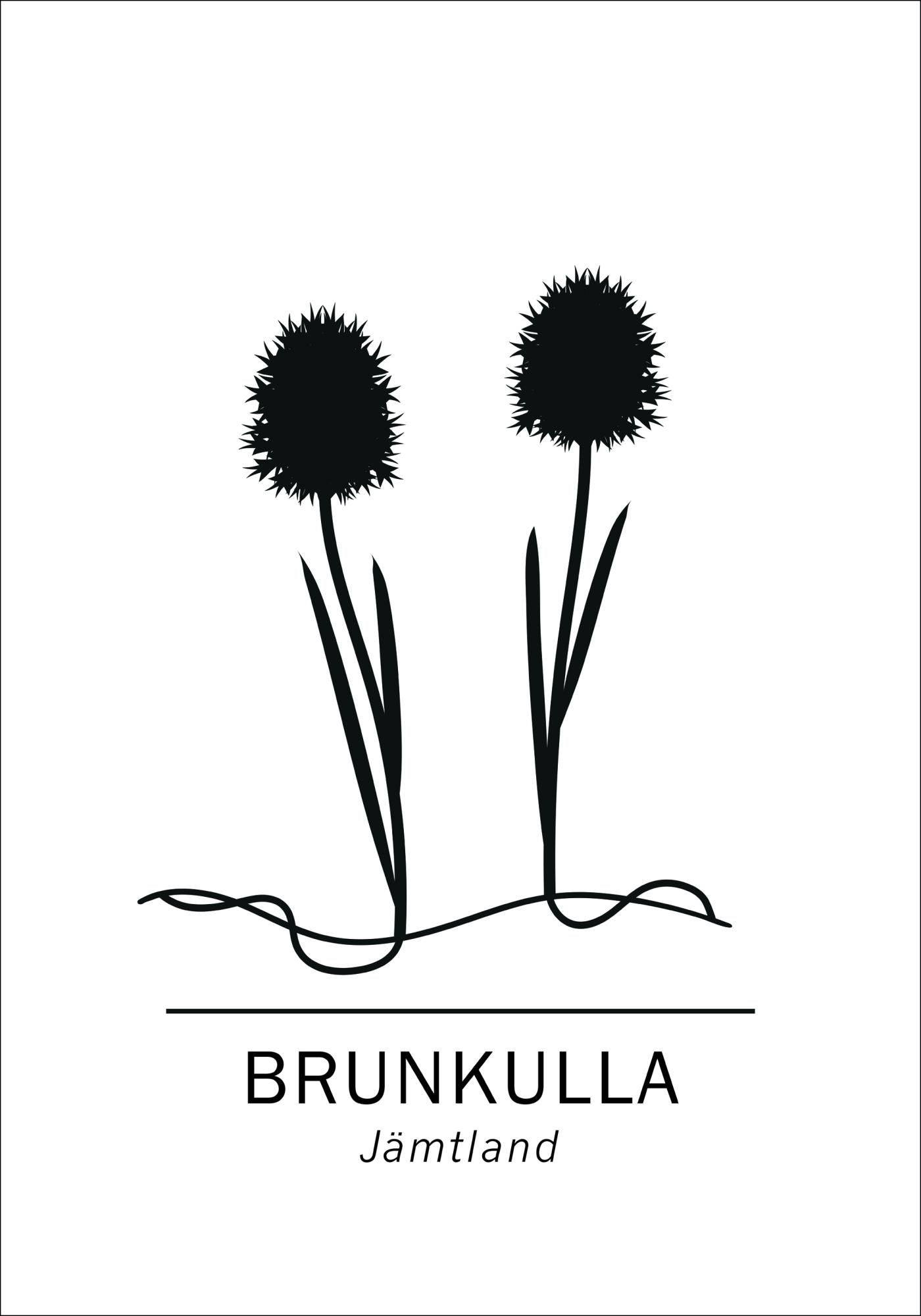 Jednostavan poster s dva rijetka crna brunkulla na bijeloj pozadini. Riječi Brunkulla i Jämtland prikazane su ispod ovih jednostavnih orhideja u ovoj minimalističkoj slici. Kombinirajte sa svijetlom bojom po vlastitom izboru kako biste učinili snažne kontraste još izraženijima.