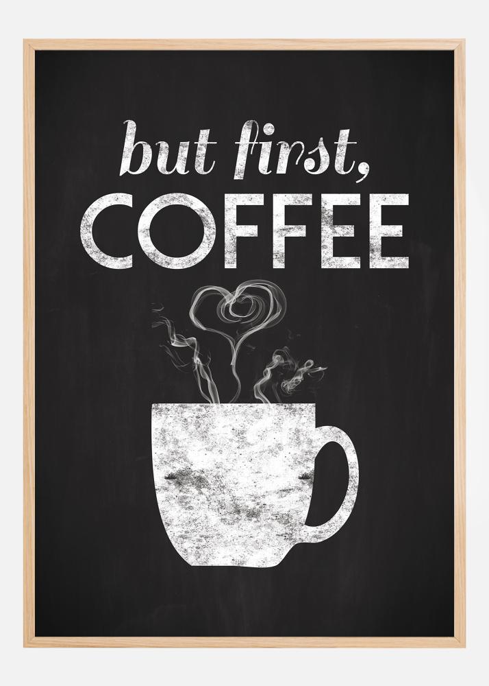 Ne možete se zasititi kave? Onda je ovaj poster za vas da ukrasite dom. Ili zaÅ¡to ne uljepÅ¡ati zid u sobi za odmor na poslu i istovremeno razjasniti redoslijed prioriteta u tvrtki. Crno-bijeli grafiÄki ispis ima elegantan dizajn koji se lijepo uklapa u sve vrste okruženja gdje je kava dostupna i jednako dobro izgleda samostalno kao i na zidu s temom kave. Kupite jednostavan crni okvir koji naglaÅ¡ava motiv i pojaÄava dojam Å¡kolske ploÄe.
