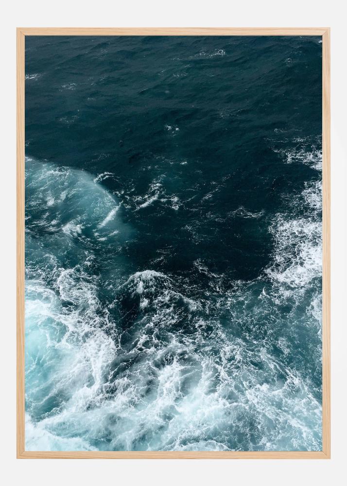 Morski poster s valovima koji udaraju i kovitlaju se u otvorenom moru. Bijela pjena kovitla se oko donjeg ruba slike kako bi dobila smireniji ton tamnog akvamarina. Zamislite da ste u čamcu na valovima uz pomoć ove fantastične slike.