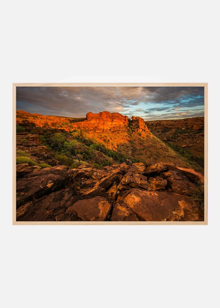 Plakat s fotografijom pustih crvenih planina u zalasku sunca, nešto za one koji vole pustinje i stijenske formacije za objesiti na zid. Topli crveni tonovi uz ledeno plavo nebo i dubinu slike stvaraju zanimljiv motiv. Uokvirite poster elegantnim okvirom za fotografije i stavite na zid s drugim pustinjskim motivima.