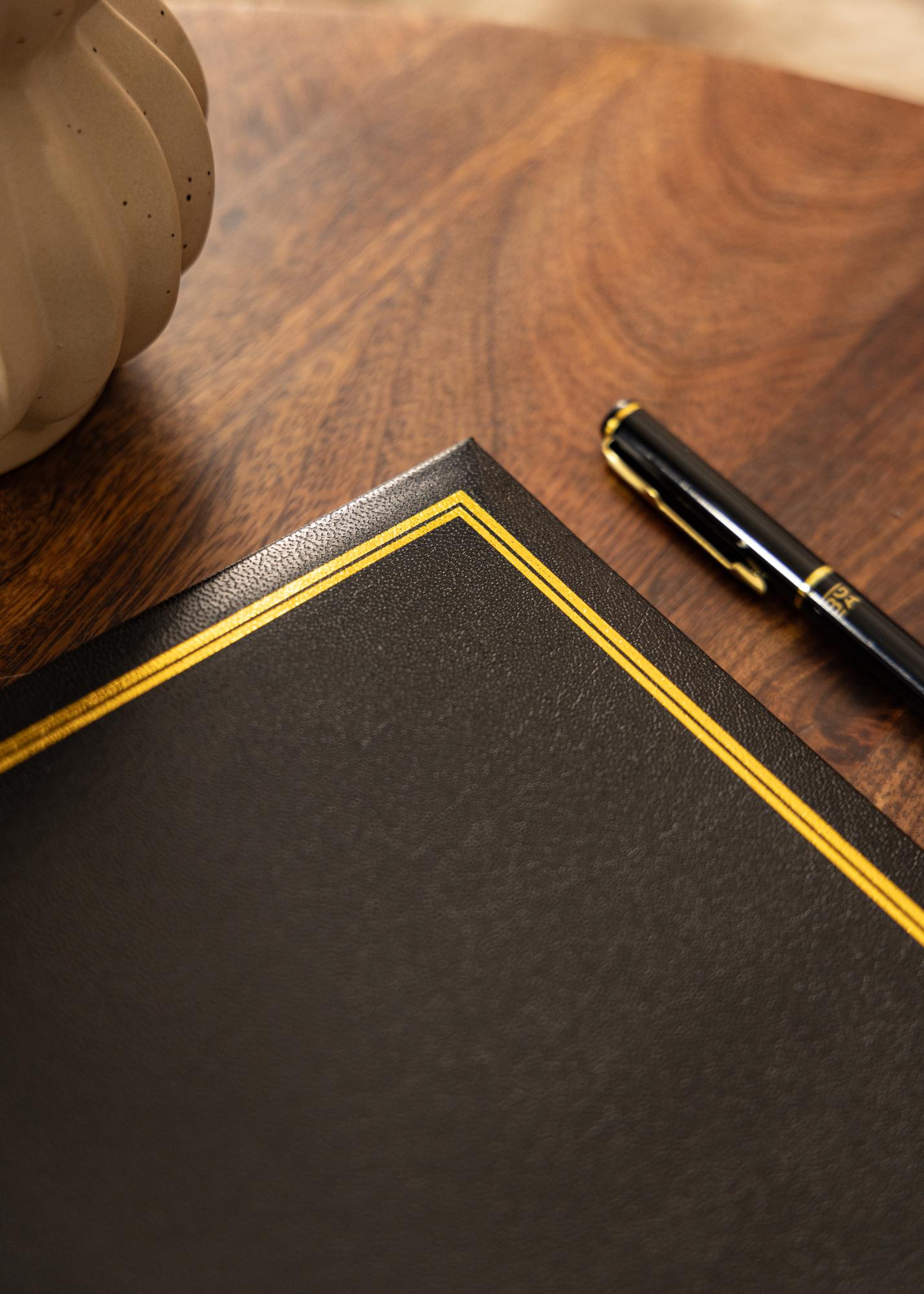 Tražite li klasični fotoalbum u praktičnom izdanju? Onda je ovaj crni model s elegantnim zlatnim linijama i samoljepljivim stranicama savršen izbor! Stranice bez kiseline vrlo su jednostavne za ispuniti vašim najboljim uspomenama, a ljepilo vam omogućuje da ih naknadno premještate.