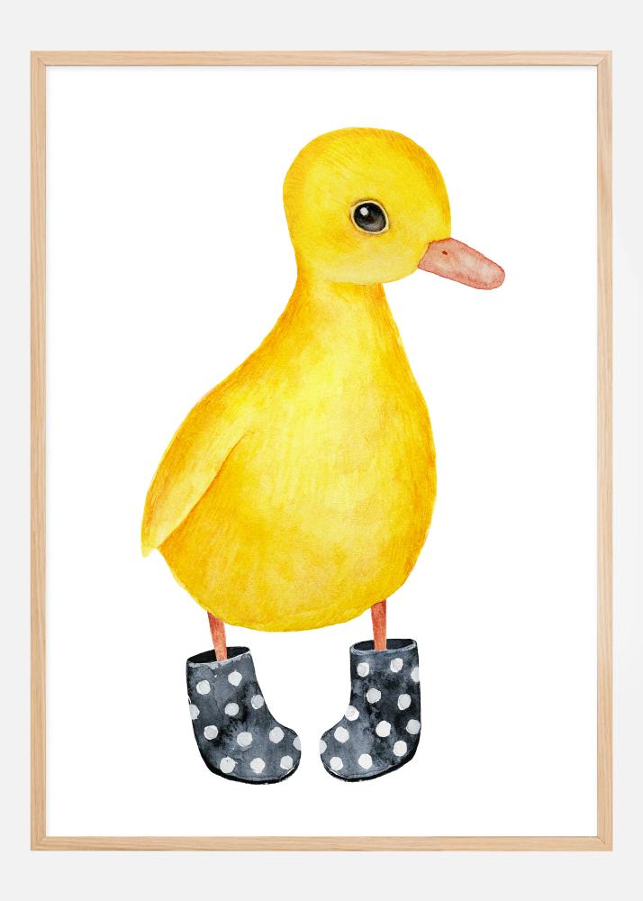 Jasna žuta boja pačića osvjetljava se protiv neutralne pozadine, a crne gumene čizme s bijelim točkicama dodaju razigran kontrast. Ovaj poster ima jednostavnost koja je i upadljiva i emotivna, što ga čini idealnim poklonom ili prijeko potrebnom bojom u vašem interijeru. Sa svojim bezvremenskim šarmom i upečatljivom paletom boja, ovo je print koji će biti voljen tijekom dugog vremenskog razdoblja.