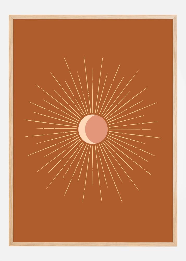 Ovaj minimalistički i elegantno dizajnirani poster s apstraktnom pomrčinom sunca postaje sofisticiran i moderan akcent na bilo kojem zidu. Sa svojim čistim linijama i sjajnim motivom na dubokoj terakota pozadini, ovaj print predstavlja savršen spoj jednostavnosti i sofisticiranosti. Središnji element dizajna, krug s eksplozijom linija, simbolizira svjetlo i energiju, te dodaje dinamičan učinak u prostoriji.