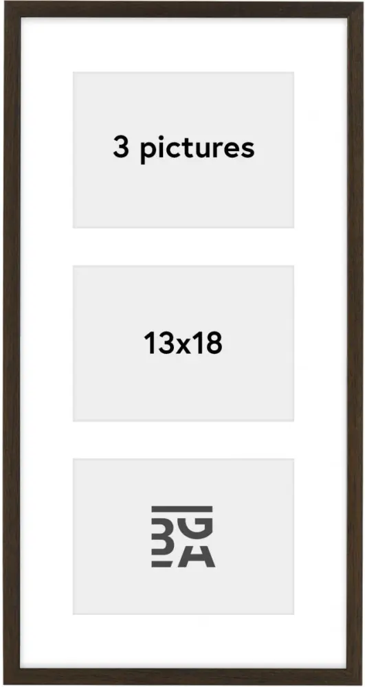 Minimalistički dizajn stavlja subjekt u fokus, tako da su vaše omiljene fotografije u središtu pažnje. Okvir je dostupan u nekoliko dezena, od kojih je ovo varijanta u orahovini s prostorom za 3 slike veličine 13x18 cm.