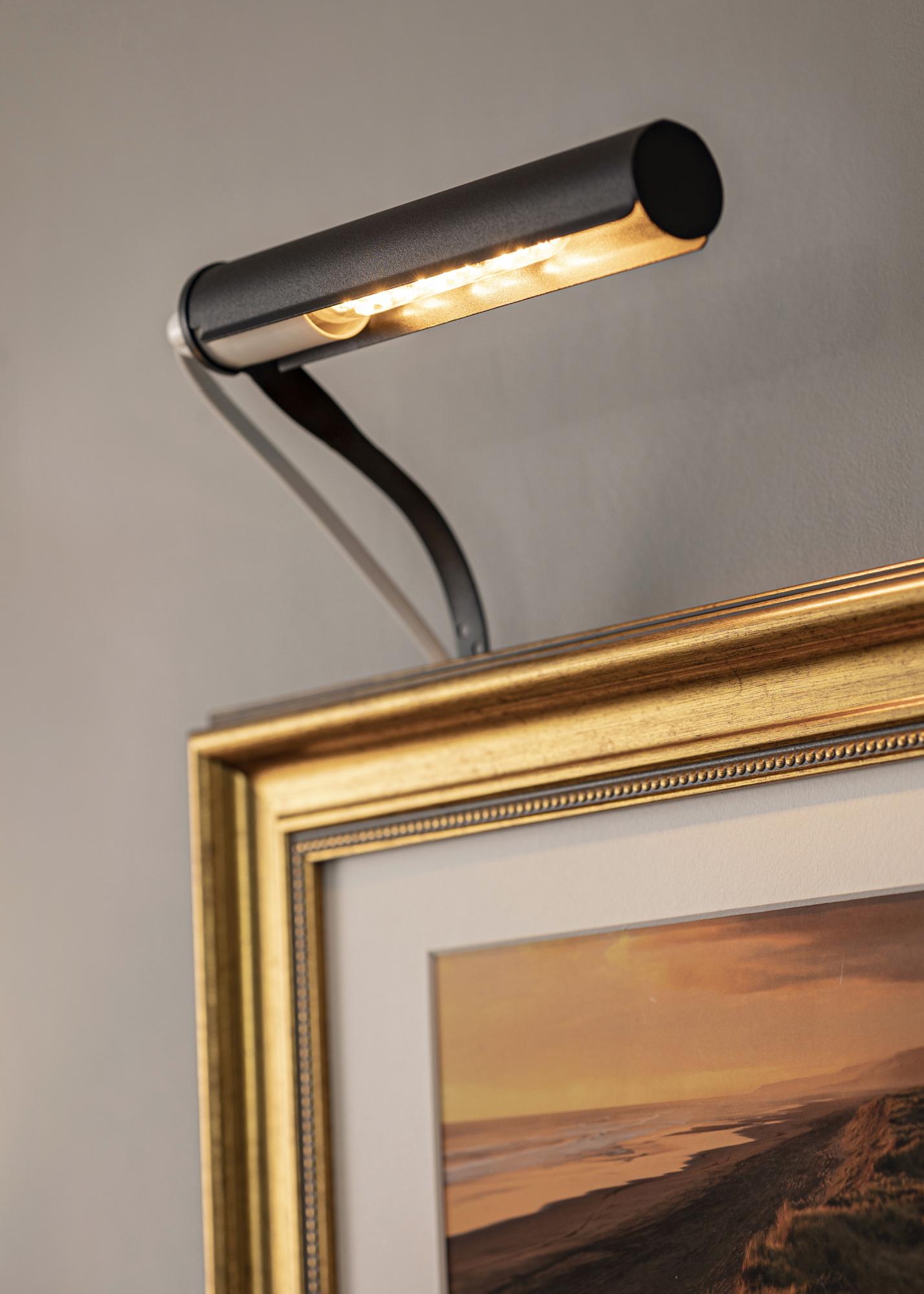 Art 1 je elegantna rasvjeta za slike koja je proizvedena i dizajnirana u Švedskoj. Olakšava isticanje slike koju posebno volite. Daje vašoj omiljenoj slici malo dodatne pozornosti!