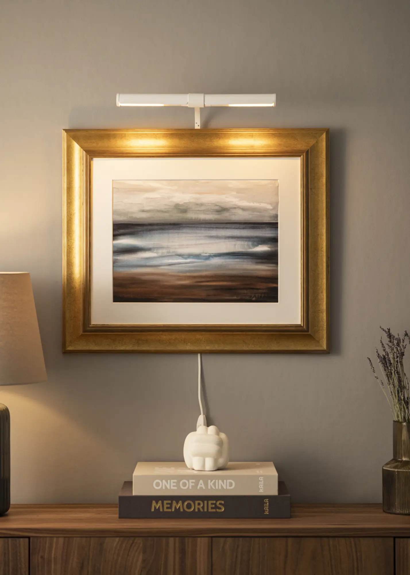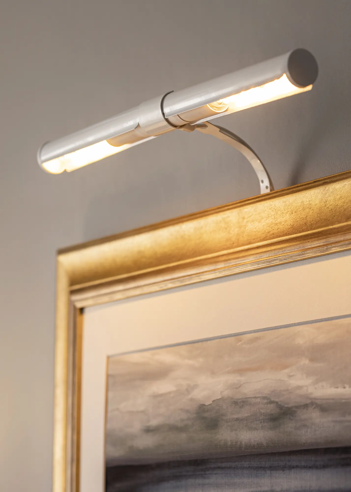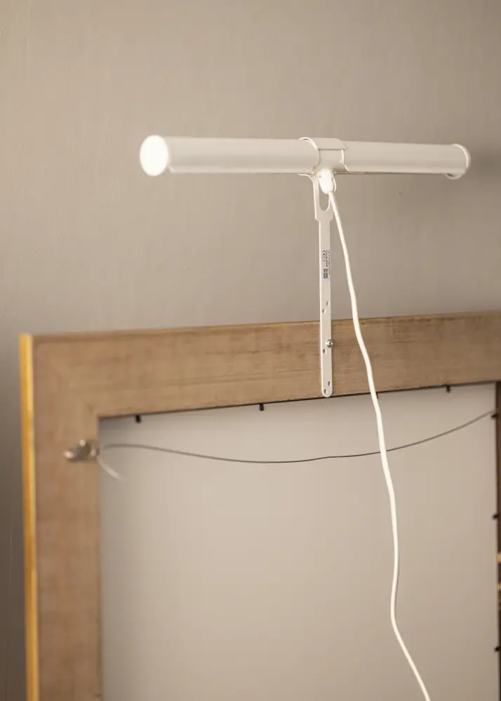 Rasvjeta za slike ima elegantnu bijelu nijansu i neutralni bijeli kabel.
