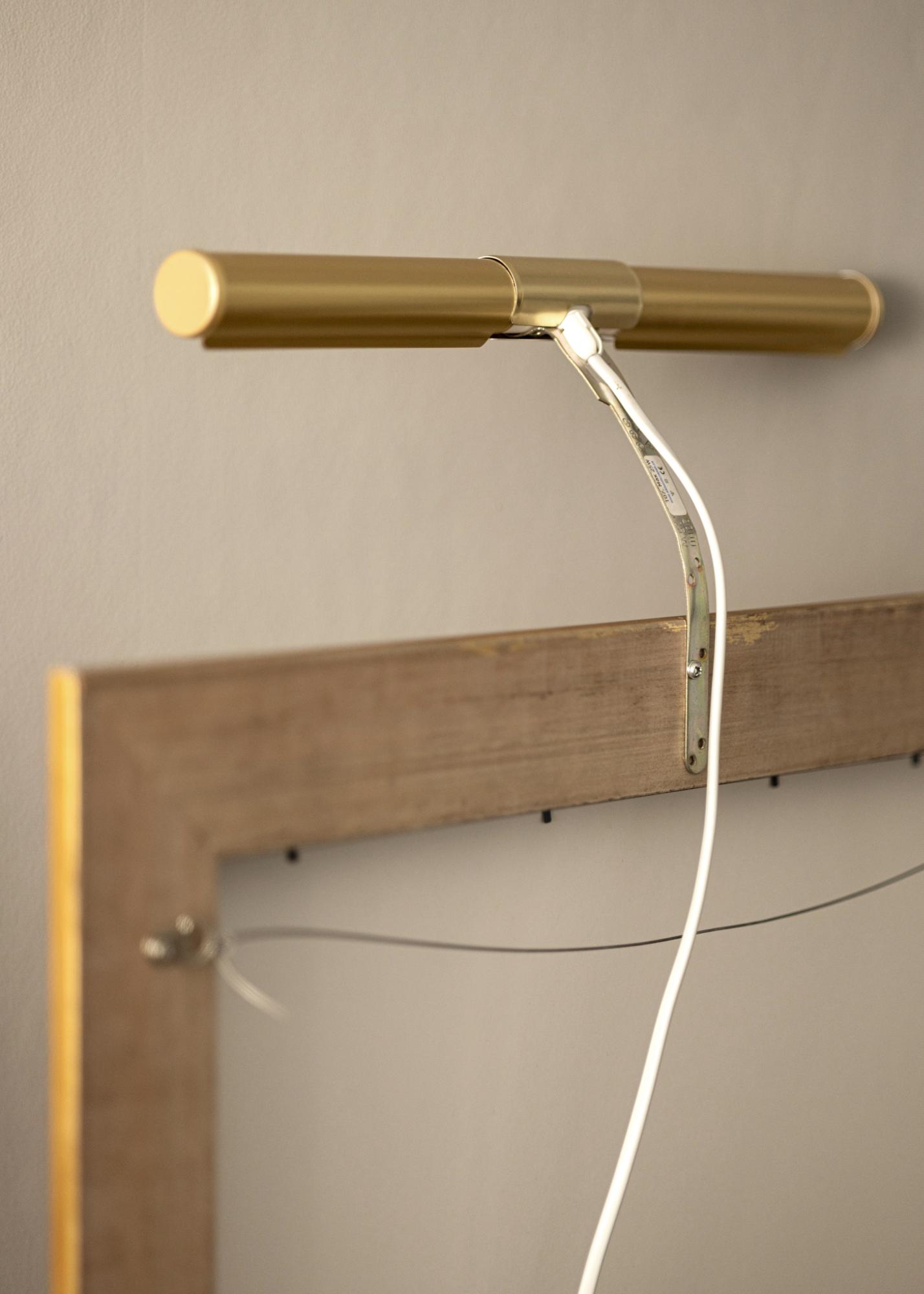 Obično pričvrstite rasvjetu za slike na stražnju stranu okvira, a mana toga je što je potreban drveni okvir (neki kompozitni okviri također odgovaraju) s širokim profilom kako bi bilo moguće pričvrstiti ga na okvir. S našim zidnim nosačem ne morate razmišljati o tome već jednostavno montirate svoju rasvjetu za slike direktno na zid iza slike.