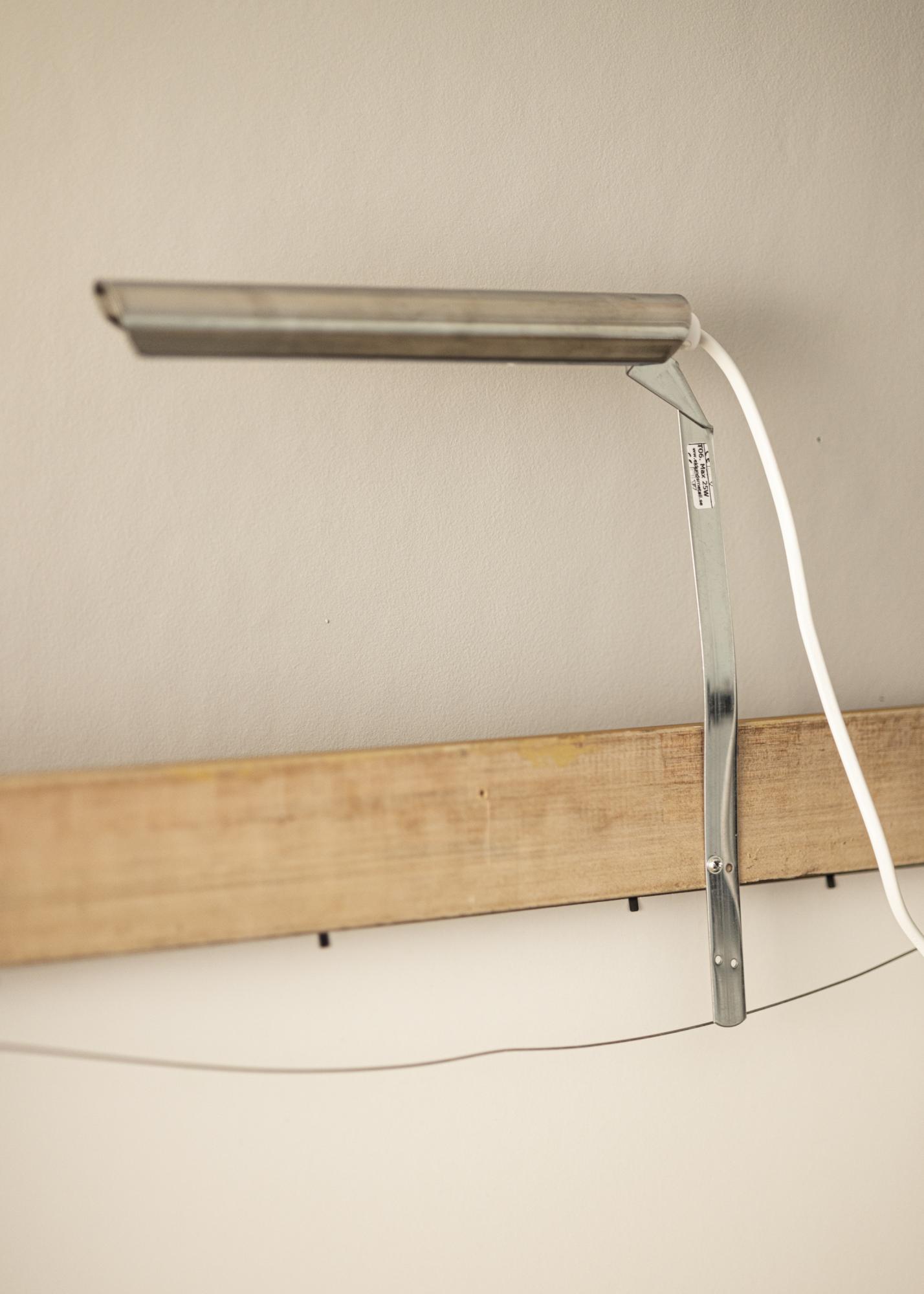 Obično pričvršćujete rasvjetu za slike na stražnju stranu okvira, nedostatak toga je što je potrebna drvena rama (neki kompozitni okviri također su u redu) koja ima široki profil kako bi bilo moguće pričvrstiti u okvir. S našim zidnim nosačem ne morate razmišljati o tome, već jednostavno montirate rasvjetu za slike direktno na zid iza slike.