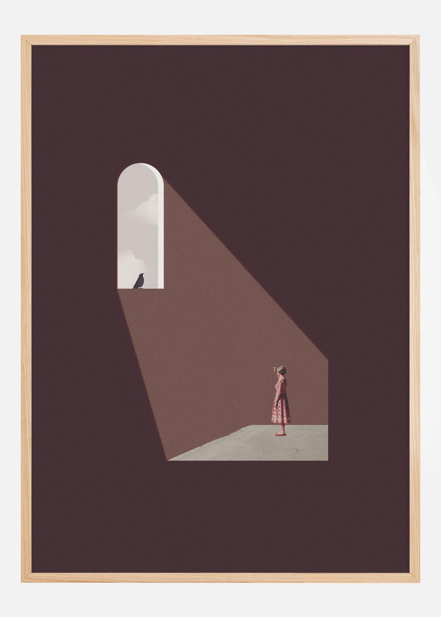 Ovaj minimalistiÄki poster hvata miran trenutak promiÅ¡ljanja. Jedna figura stoji pod zrakom svjetlosti koja se probija kroz prozor, simbolizirajuÄi prosvjetljenje i refleksiju. Slika je zasiÄena mekim smeÄim i bež tonovima, stvarajuÄi toplu i privlaÄnu atmosferu.