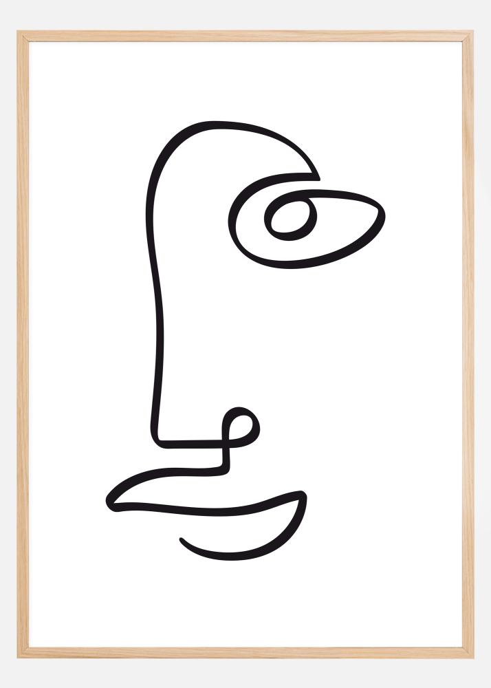 Apstraktni poster s licem, nacrtan crnom linijom. Jednostavna crna linija se u slici uvija kako bi stvorila jednu stranu lica bez da napušta papir. Razmotrite ovu jednostavnu sliku dok je objesite kod kuće i pokušajte uočiti druge figure skrivene u djelu.