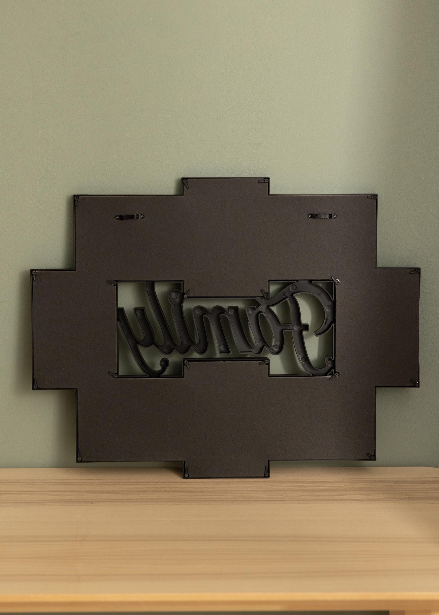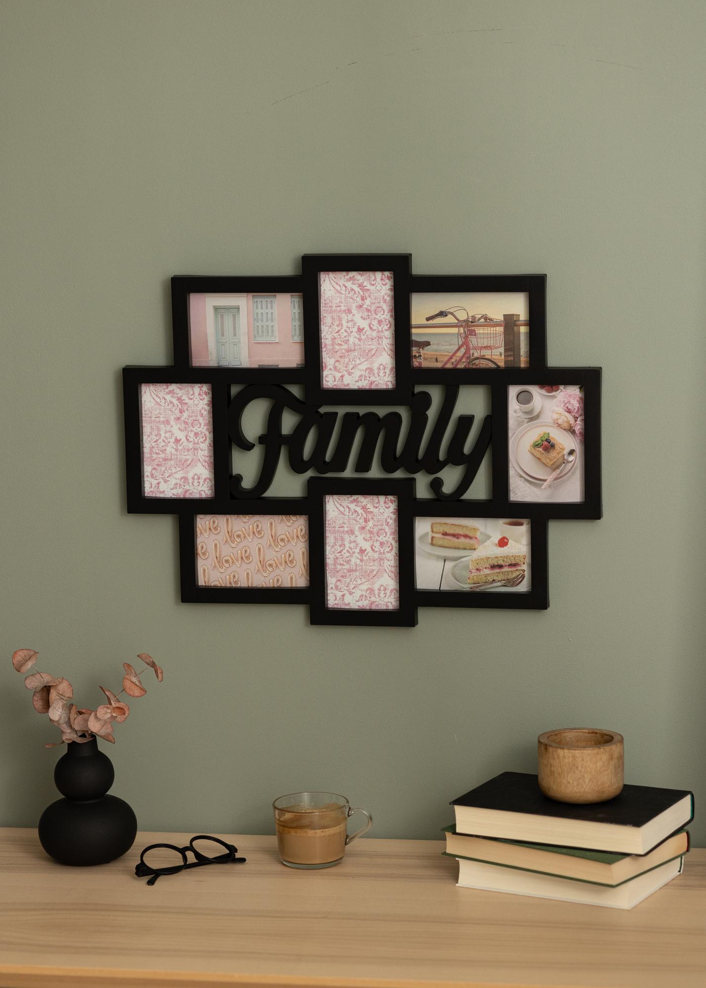 Objesite fotografije cijele obitelji u elegantan kolažni okvir! Ovaj crni okvir sadrži 8 slika u veliÄini 10x15 cm, koje se postavljaju oko teksta ”Obitelj” koji je izrezbaren u sredini okvira. Postoji prostor za fotografije u portretnom i pejzažnom formatu, tako da možete biti fleksibilniji pri odabiru motiva koje želite postaviti u okvir. Da biste montirali svoje slike u kolažni okvir, otpustite stražnju stranu okvira uz pomoÄ okretnih kopÄi, a zatim jednostavno smjestite svoje fotografije gdje želite.