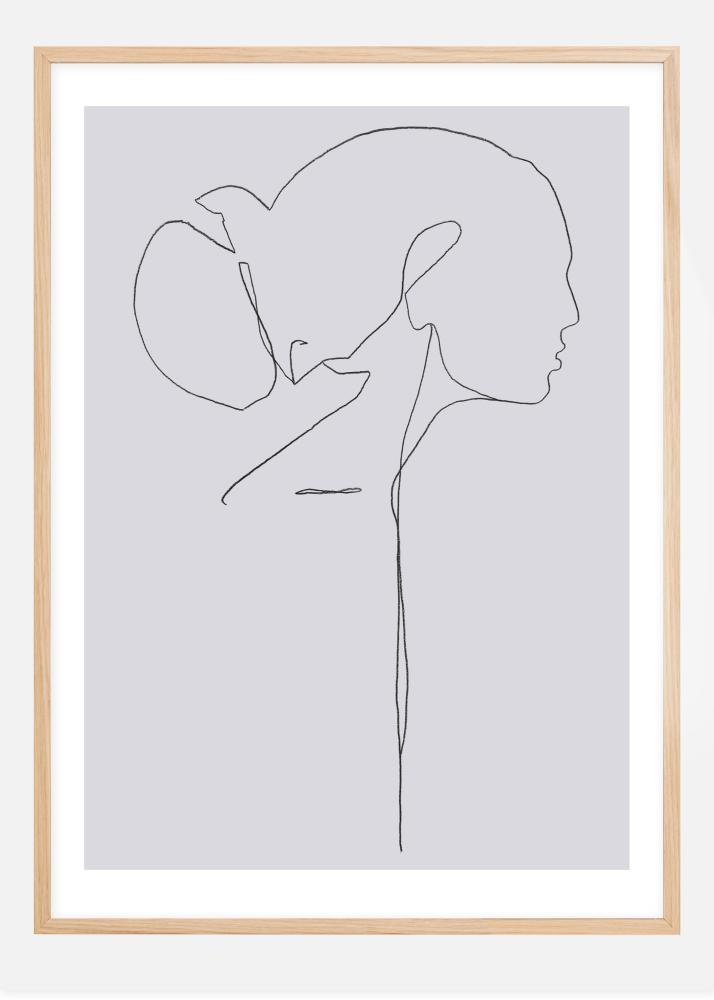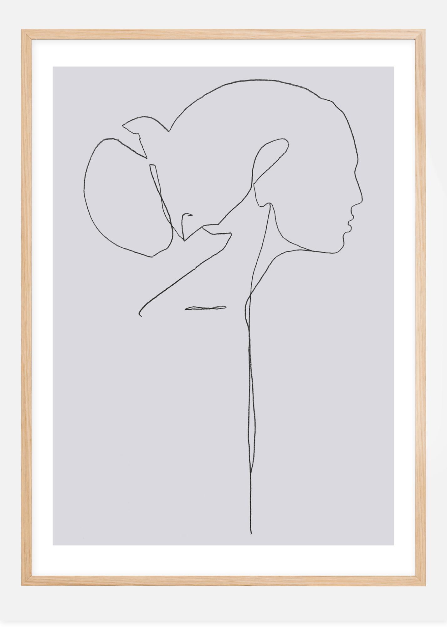 Lijepa i elegantna linijska umjetnost u obliku žene s podignutom kosom prikazane u profilu, koju je kreirao Jörgen Hansson Art. Poster je lijep za kombiniranje s ostalim Jörgen Hanssonovim djelima Female Lines za kolaž na istu temu.