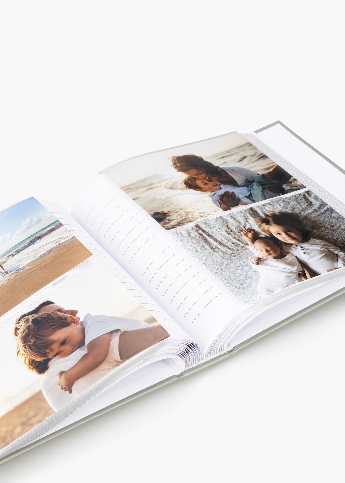 Korice albuma obučene su u bezvremensku sivu boju koja pristaje svakom domu i stilu uređenja. Bijele stranice pružaju čistu i svježu pozadinu za vaše fotografije, dok horizontalna orijentacija slika naglašava jedinstvenu čar svake slike. Osim toga, za svaku fotografiju postoji odgovarajuće polje za pisanje u kojem možete zabilježiti nezaboravne detalje ili datume, čineći album osobnim i informativnim.