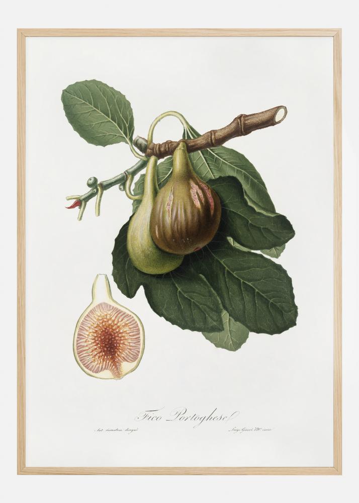 Botanički poster s ilustracijom smokve. Ova slika podsjeća na stare školske slike, sa svojim jednostavnim, ali i dalje detaljnim crtežima na zidu. Akvarelna slika hvata sve detalje, koja također prikazuje presjek smokve i sjemenke unutra.