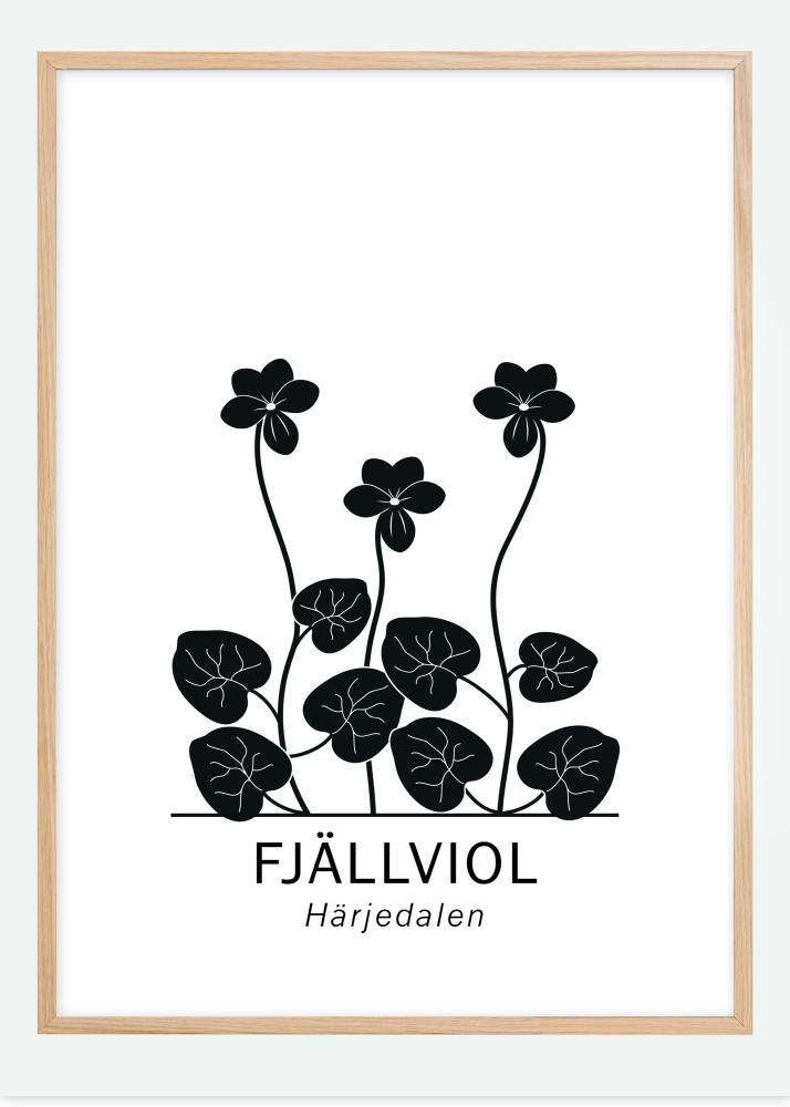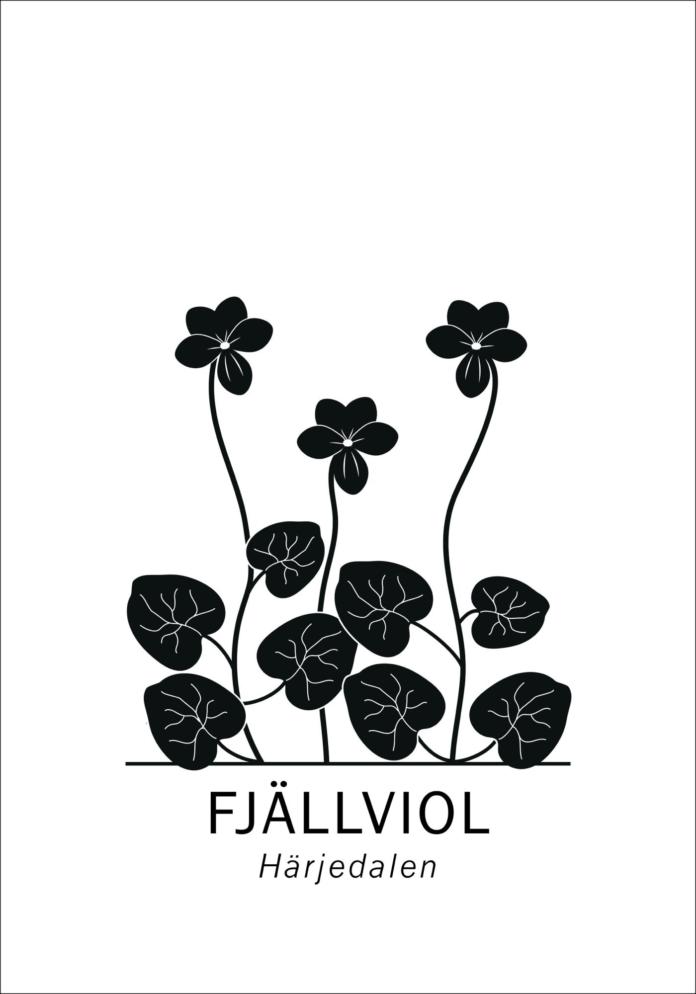 Jednostavan poster s planinskim ljubičicama tiskan u crnoj boji na bijeloj pozadini. Jednostavna elegancija ovog postera pomaže u vođenju oka po slici. Crni tekst - Planinska ljubičica, Härjedalen - vodi pogled prema tri različita cvijeta koja zajedno plešu u sredini. Za sreću, objesi ovu prekrasnu sliku na svoj zid.