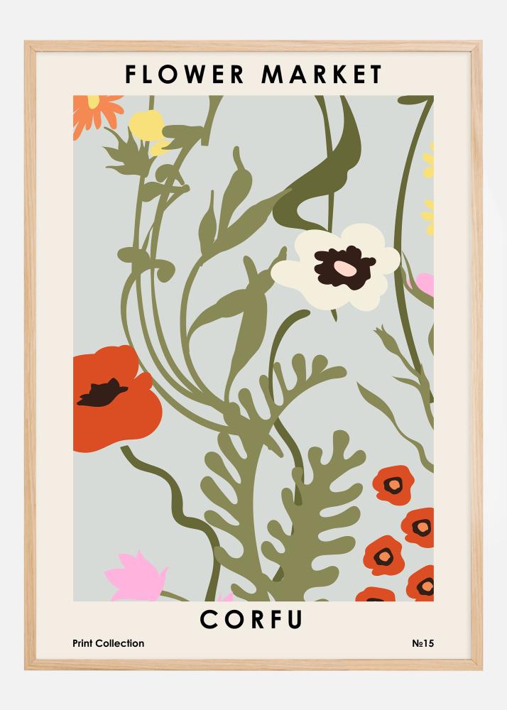 "KRF" je elegantno otisnut na dnu, iznad "Print Collection ?15", što pojačava osjećaj mjesta i pripadnosti. Ovaj print bi osvijetlio svaki prostor i unio komadić mediteranskog šarma u vaš dom. Shema boja je inspirirana bogatom florom Krfa, koja donosi dašak boje i vizualni interes u bilo koji ambijent u kojem se nalazi. Savršen je poster za svakoga tko se želi okružiti uspomenom na sunčane plaže Krfa i živahne cvjetne tržnice.