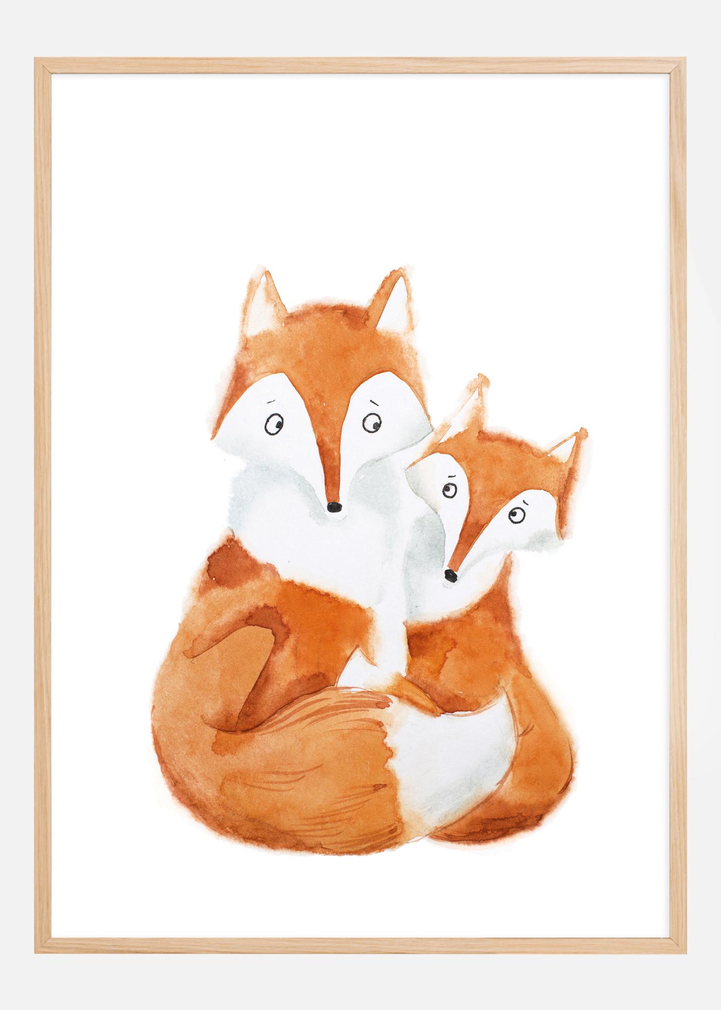 Unesite osjećaj topline i obiteljske bliskosti s ovim šarmantnim posterom obitelji lisica. Prikazuje veliku lisicu koja grli svoje mladunče, sliku koja zrači ljubavlju i sigurnošću. Mekani, zemljani tonovi hrđavo smeđe i bijele boje u ilustraciji pružaju prirodni i umirujući učinak, savršeni za stvaranje ugodne atmosfere u dječjoj sobi ili nekom drugom dijelu doma gdje se želi istaknuti toplina i briga.