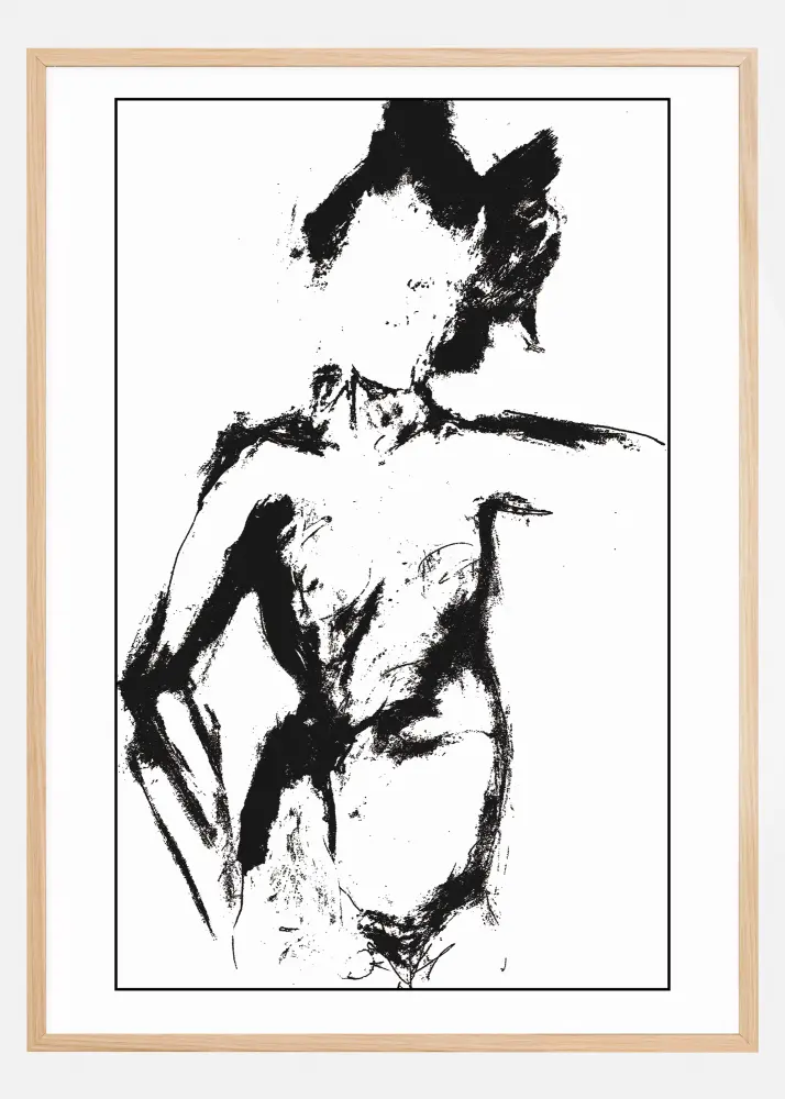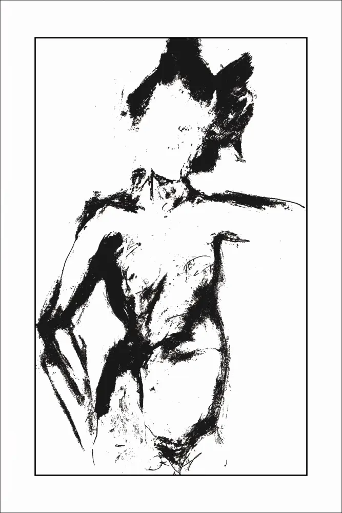 Crno-bijeli poster s crtežom lika. Debeli smjeli crni potezi kistom stvorili su ovu ženu u gotovo chiaroscuro stilu. Gledaj ovo neko vrijeme i gotovo očekuješ da će se pomaknuti.