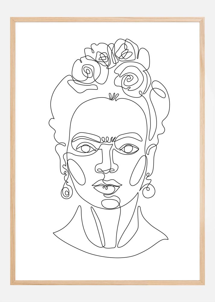 Ovaj minimalistiÄki poster prikazuje elegantan crtež ženskog lika s cvijeÄem u kosi i klasiÄnim nauÅ¡nicama. UmjetniÄko djelo izraÄeno je u jednoj kontinuiranoj liniji koja daje moderan zaokret tradicionalnom portretu. Paleta boja je Äista i jednostavna, ograniÄena na crne linije na bijeloj pozadini, Å¡to daje minimalistiÄki osjeÄaj koji se dobro uklapa u moderan ili minimalistiÄki dom.
