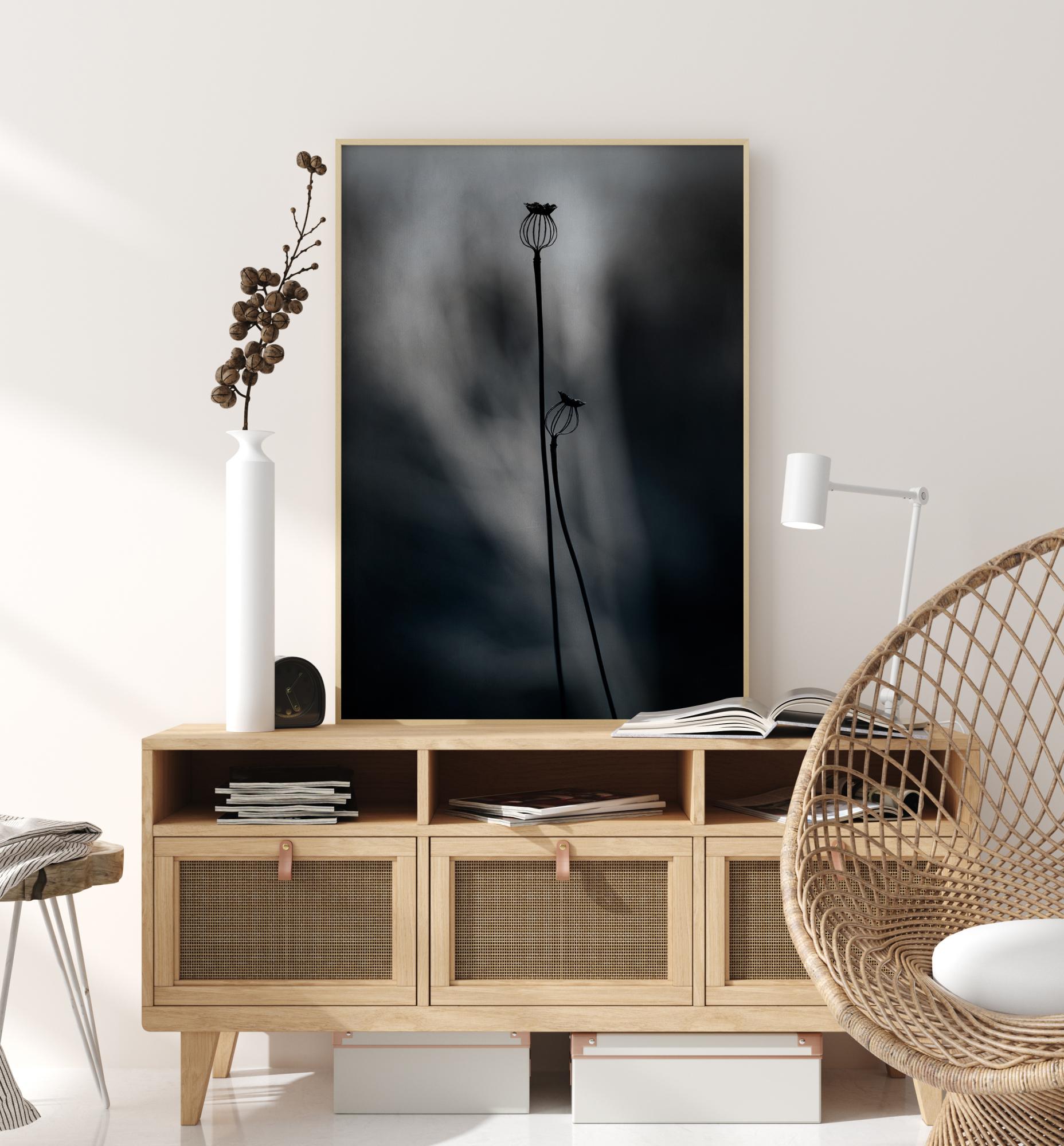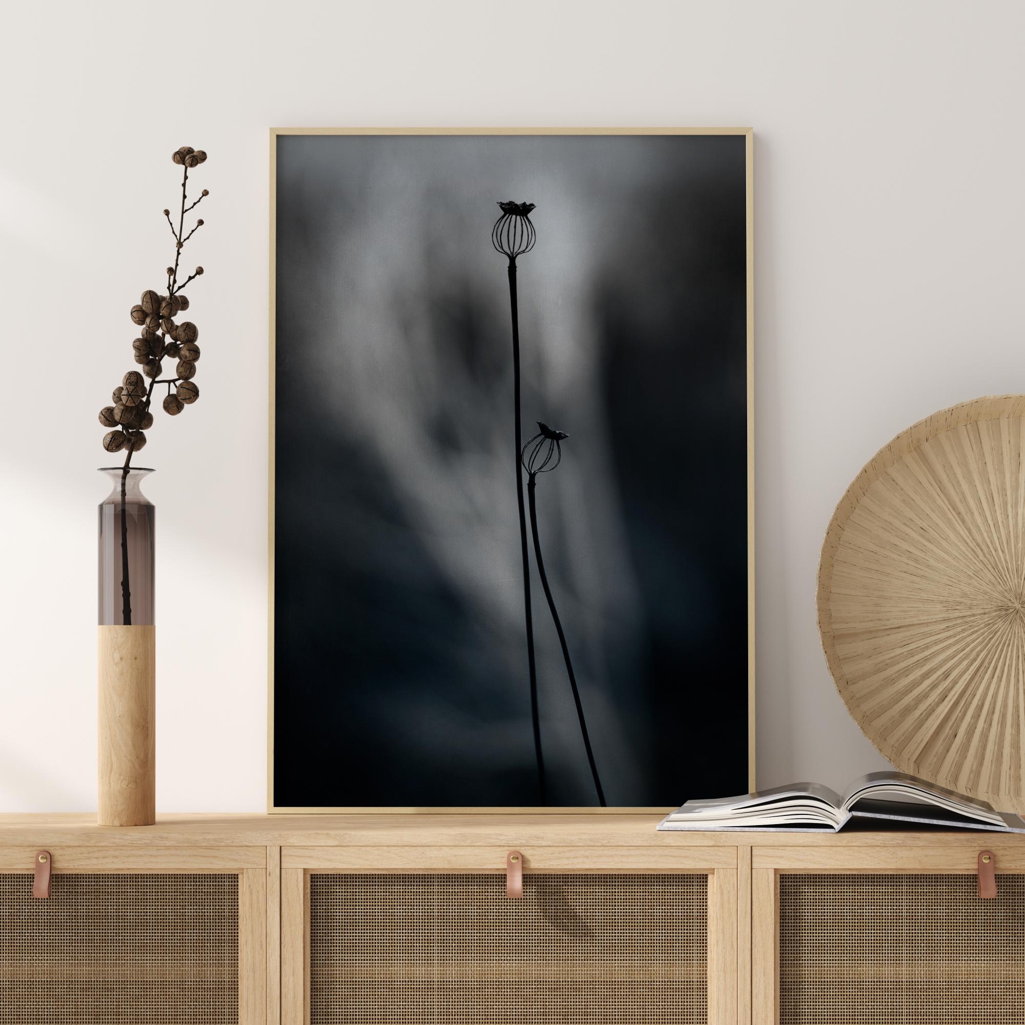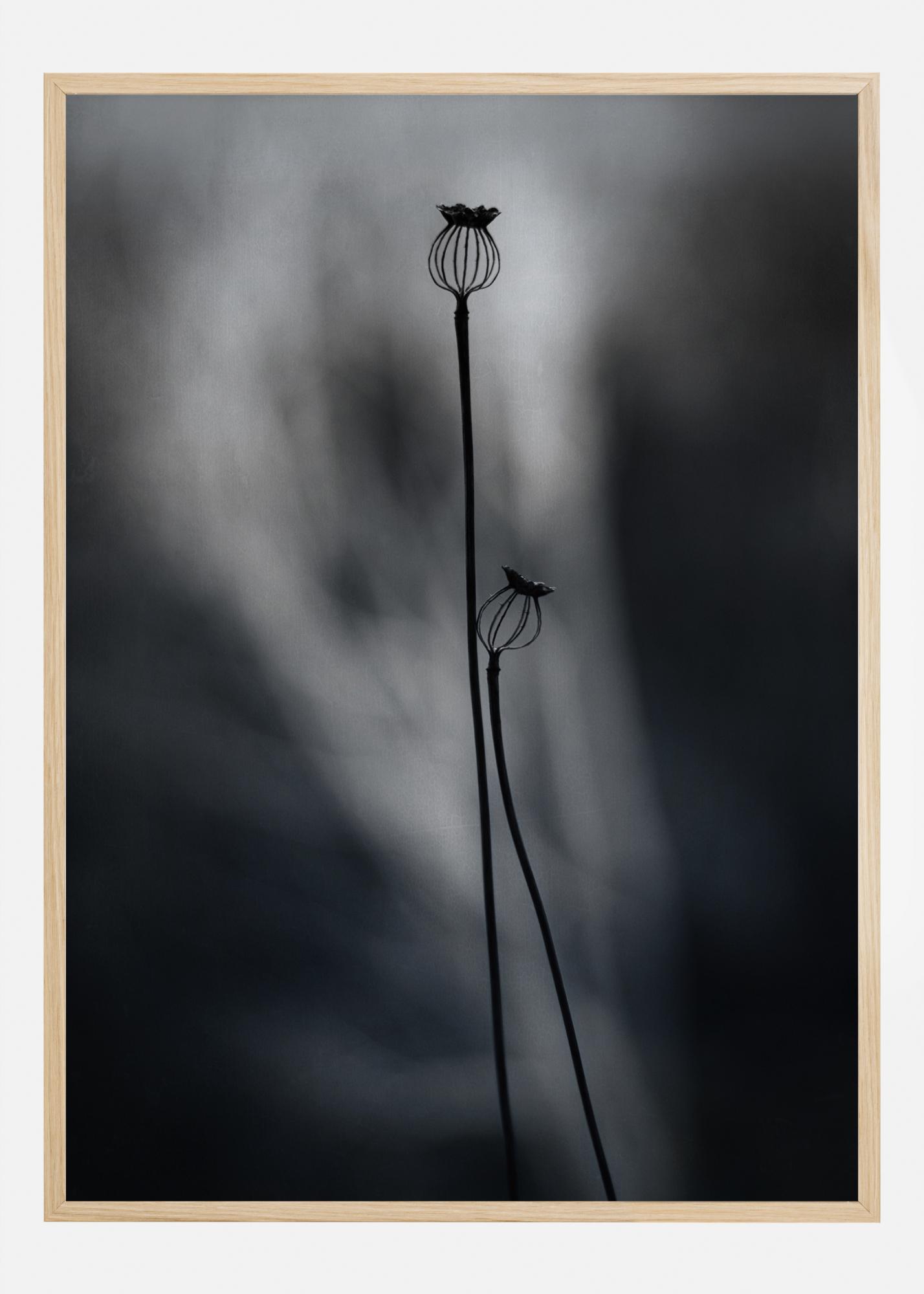 Eterični poster s dvije makove čahure na lagano mutnoj pozadini iza. Ova apstraktna slika će vas okupirati satima. Unesite ovu fantastičnu kombinaciju smirenosti i pokreta u svoj dom.