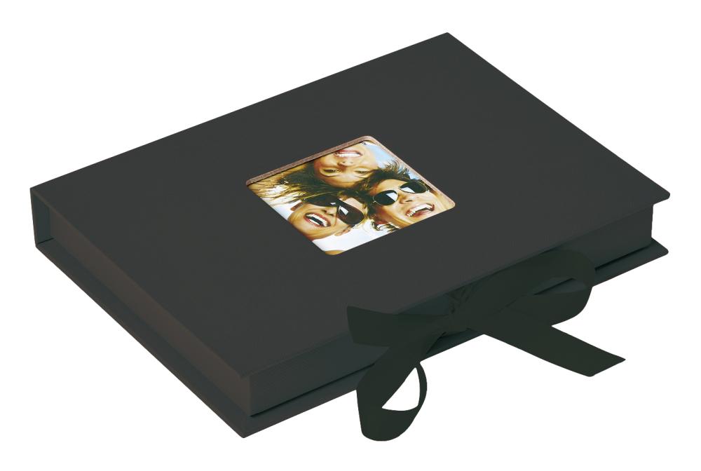 Elegantna fotokutija s modernim dizajnom u ukusnoj crnoj boji koja može primiti 70 fotografija veličine do 13x18 cm. Na gornjoj strani kutije nalazi se prostor za vlastitu fotografiju (6x6 cm) kako biste lako mogli učiniti svoju fotokutiju osobnijom.
