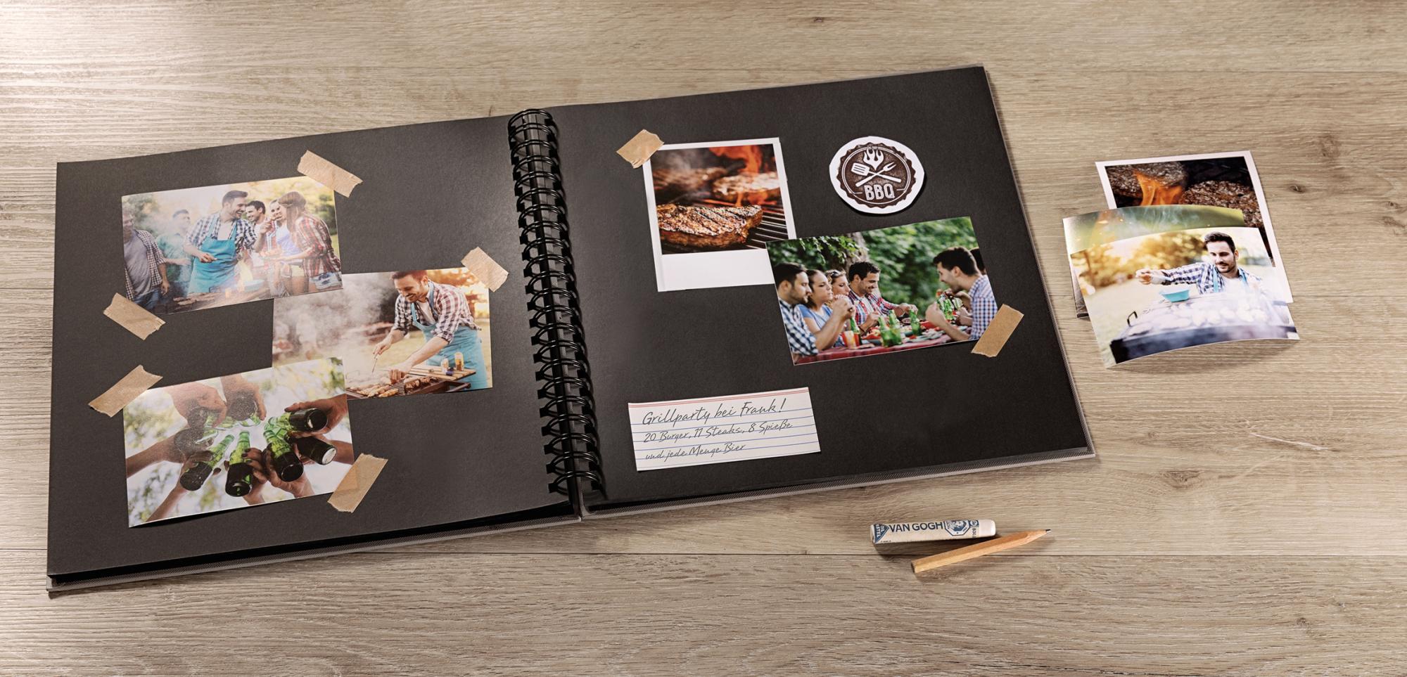 Šareni crveni spiralni album s Wire-O uvezom od renomiranog Walthera. Album ima kvadratni format s dimenzijama 30x30 cm. Naravno, crni listovi albuma su bez kiseline. Na prednjoj strani albuma nalazi se mjesto za vlastitu sliku (10x10 cm) što daje osobni dojam.
