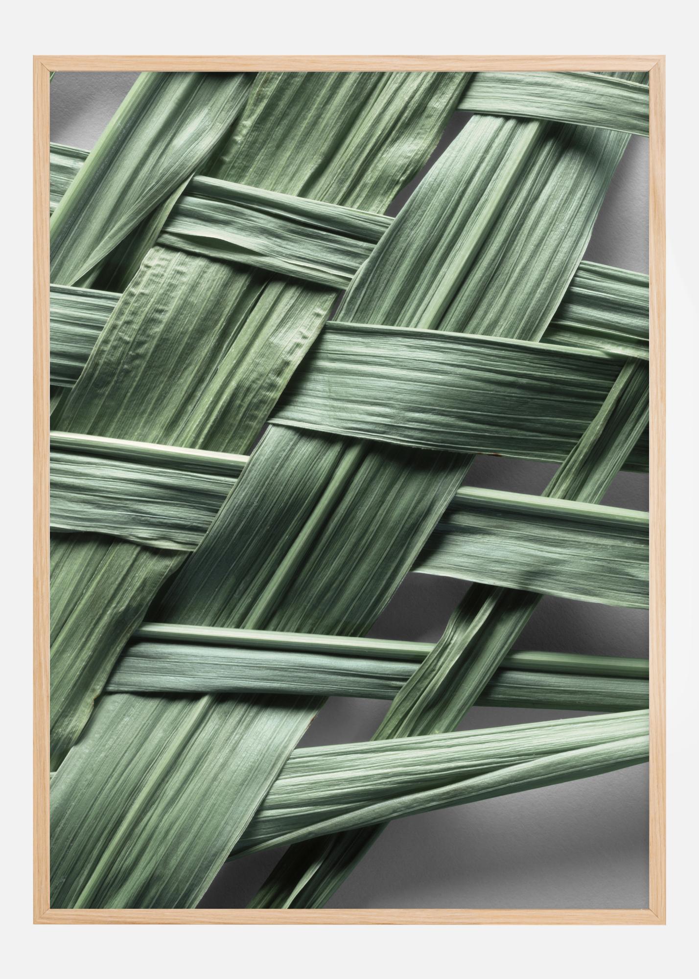 Ovaj elegantan i prirodom inspiriran poster prikazuje detaljno tkanje zelenog lišća, čije se linije međusobno preklapaju u organiziranom kaosu. Živa zelena boja i razne teksture koje proizlaze iz listova stvaraju umirujući i svjež dojam, što pridonosi osjećaju prisutnosti prirode u unutrašnjem prostoru.