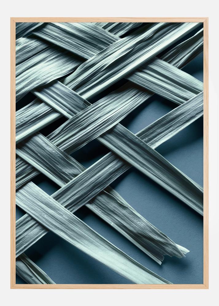 Ovaj suvremeni poster prikazuje fascinantan i apstraktan motiv križajućih linija s mekim, plavo-zelenim tonom. Pomno aranžirana kompozicija linija stvara dinamičan uzorak koji daje osjećaj kretanja i teksture, čineći sliku vizualno zanimljivom i poticajnom za razmišljanje.