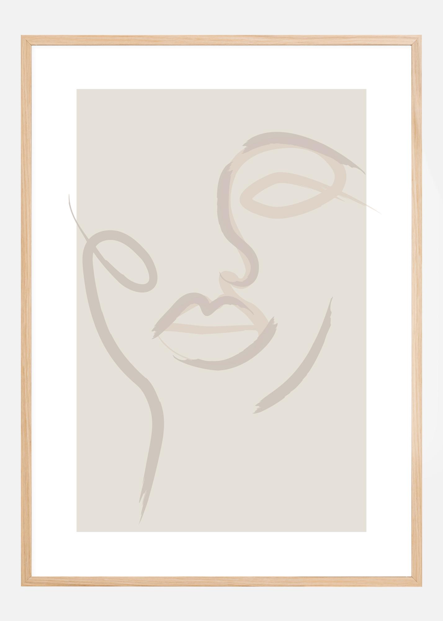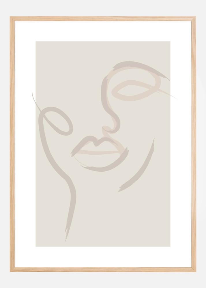 Lijepa portretna poster napravljena jednostavnim potezima kistom. Jednostavne linije oblikuju žensko lice na bež pozadini. Ovo je jednostavnost u svom najboljem izdanju. Uz pomoć ova tri jednostavna poteza kistom, možda ćete se zapitati tko je ova lijepa žena?