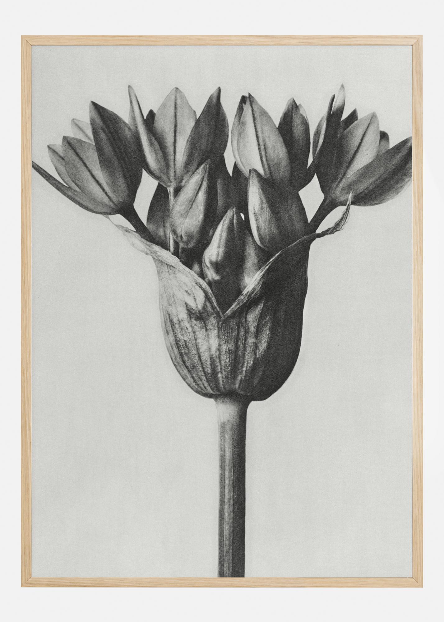 Prekrasan crno-bijeli poster cvijeta iz kojeg izviru mnogi manji cvjetovi. Prikazuje simbol sreće svojom elegancijom i jednostavnošću. Svjetlosni i sjenski efekti stvaraju prekrasan otisak na jednostavnoj sivoj pozadini. To ga čini prikladnim otiskom u prostranom okruženju kao što je dnevni boravak ili spavaća soba.
